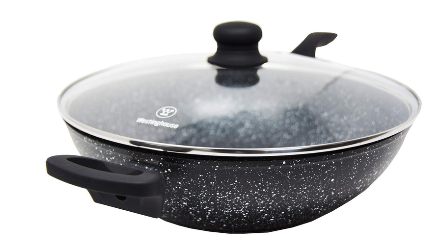 Westinghouse Black Marble Wokpfanne Ø32 cm, Mit Deckel, Induktion & Alle Herdarten, PFOA-Frei, Non S
