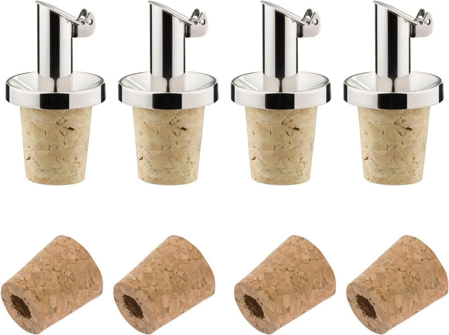 Westmark 4 Öl-/Essig-Ausgiesser + 4 Ersatzkorken, mit Kläppchen, Metall/rostfreier Edelstahl, Naturk