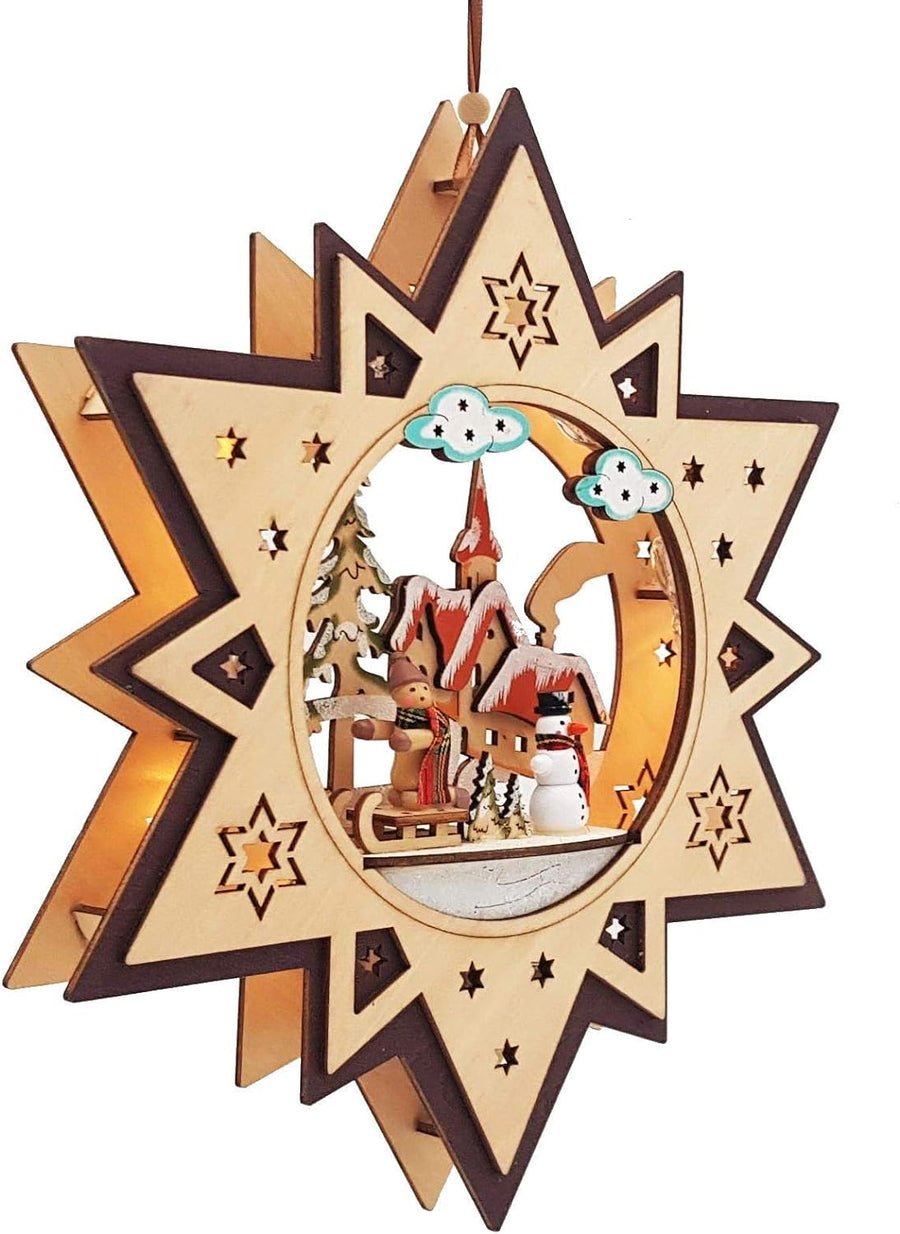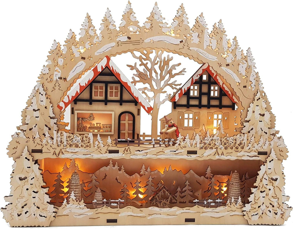 Wichtelstube-Kollektion Holzkunst LED Schwibbogen mit Podest Winterdorf im Erzgebirge Schwibbogen Li