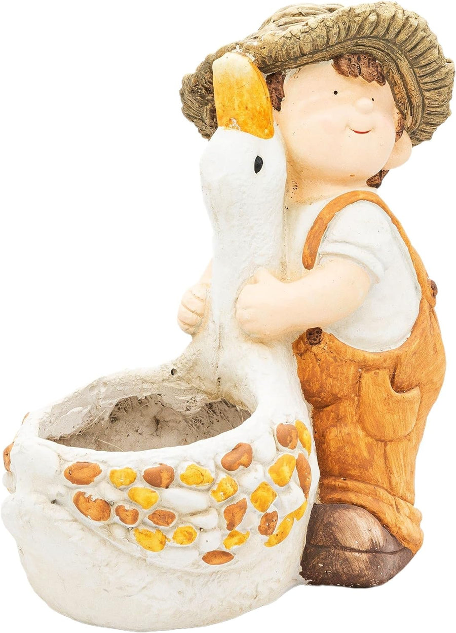 Wichtelstube-Kollektion XL Gartenfigur Dekofigur Martin mit Gans als Blumentopf Gartendeko Figuren f