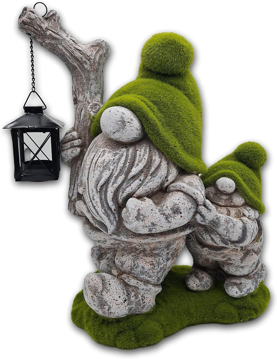 Wichtelstube-Kollektion Gartenzwerge Moos Wichtel für den Garten XXL mit Laterne Gartenfigur aus Ste