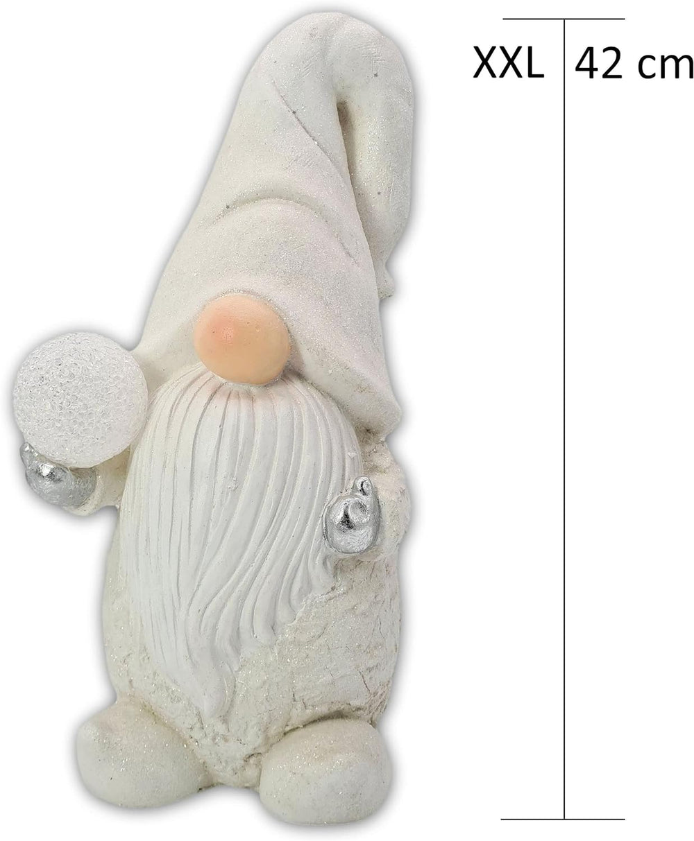 Wichtelstube-Kollektion XL Wichtel Figuren weiss Weihnachten 42cm mit LED Kugel Weihnachtsdeko ausse