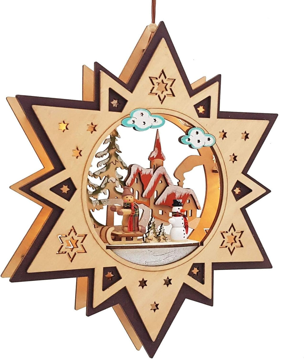 Wichtelstube-Kollektion LED Fensterbilder Weihnachten Holz beleuchtet Winterkinder inkl. Timer Schwi