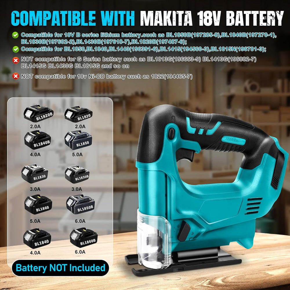 Akku Stichsäge für Makita 18V Lithium-Akku, Elektro-Stichsäge mit 10 Stichsägeblatt,Variable Geschwi