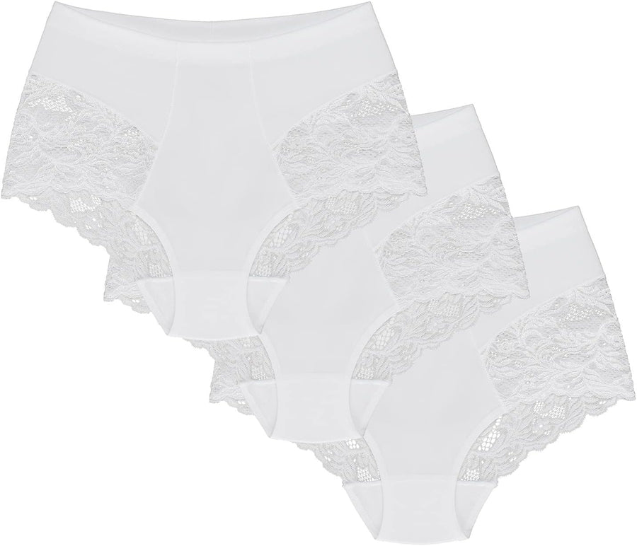 Wolbar Dame Slip Spitze Miederslip Shapewear Figurformende Sexy WB184 S (3-er Pack) Weiss, S (3-er P