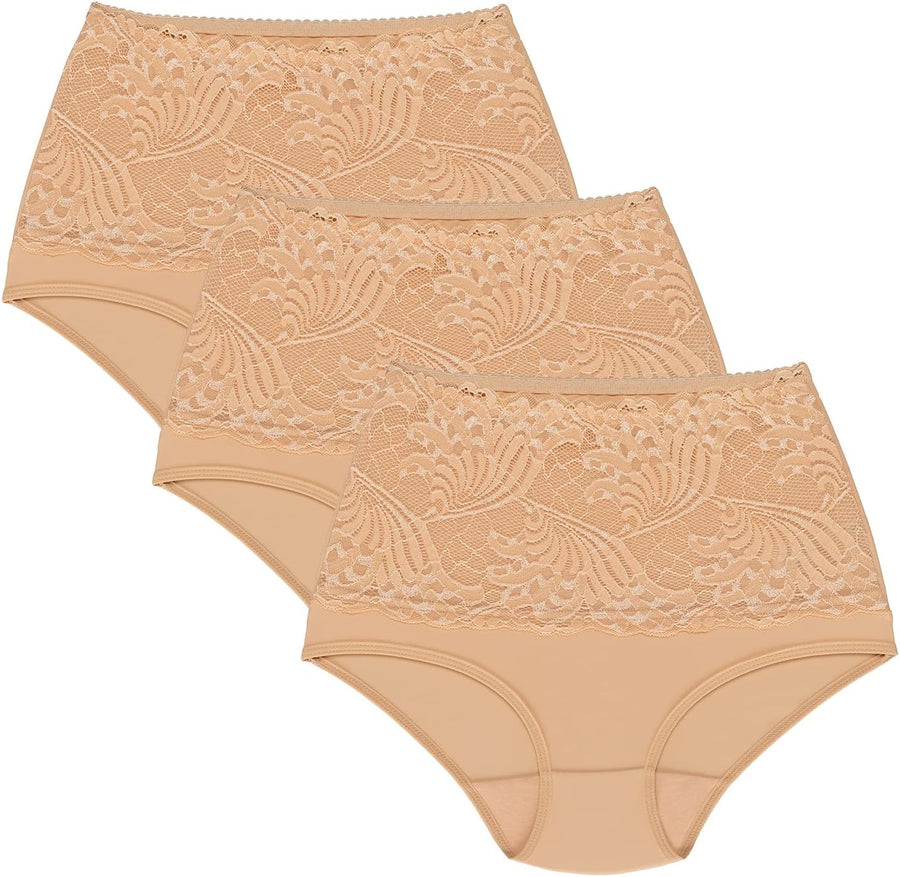 Damen Sexy Shapewear-Slips Spitze Miederslip Hohe Taille Figurformende WB184, (3-er Pack) Beige