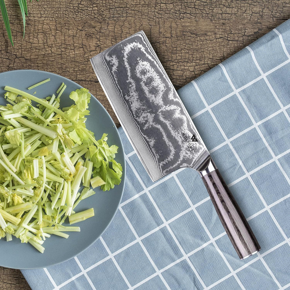 Wolfcut Damascus Hackmesser/Hackbeil 17,8 cm 67 Lagigen Damaszener Stahl schwarzes Pakkaholzgriff mi