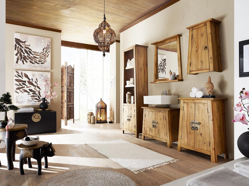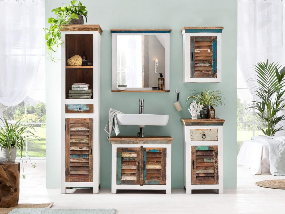 Woodkings® Bad Hängeschrank Kalkutta mit Fach recyceltes Holz bunt rustikal Hängebad Badhochschrank