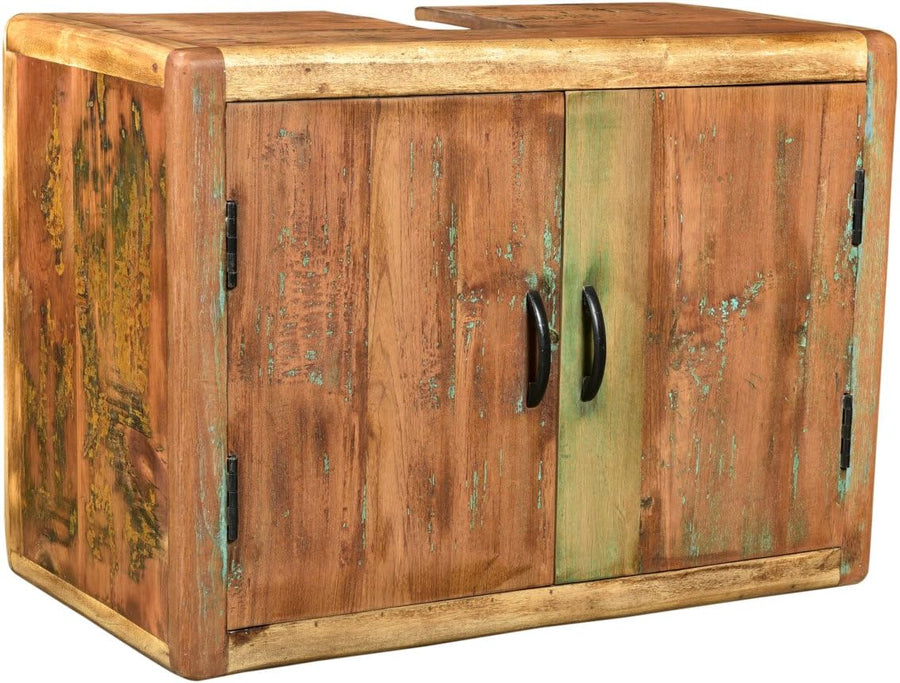 Woodkings® Bad Waschbeckenunterschrank Kalkutta recyceltes Holz bunt rustikal Waschtischunterschrank