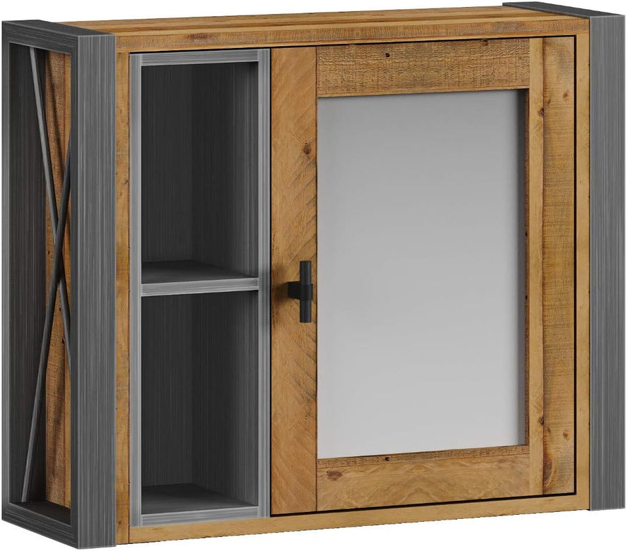 Woodkings® Spiegelschrank Detroit mit Ablage, recycelte Pinie mit Metall Rahmen grau, Wandspiegel In