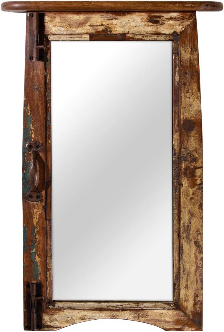 Woodkings® Holz Spiegel Fenster Design 45x68 recyceltes Altholz mit Ablage Vintage rustikal Möbel Ba