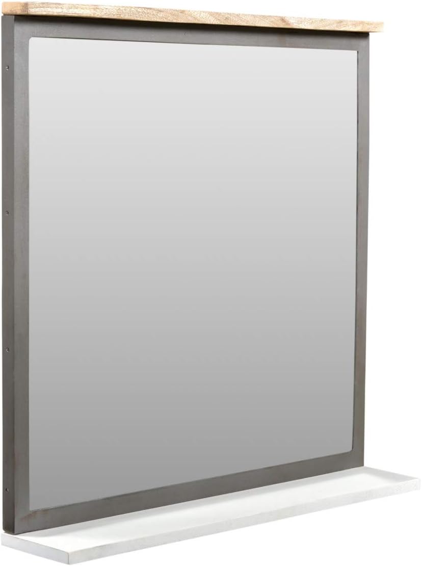 Woodkings® Spiegel 80x70cm Burnham Echtholz recycelte Pinie Natur rustikal Badspiegel mit Ablage in