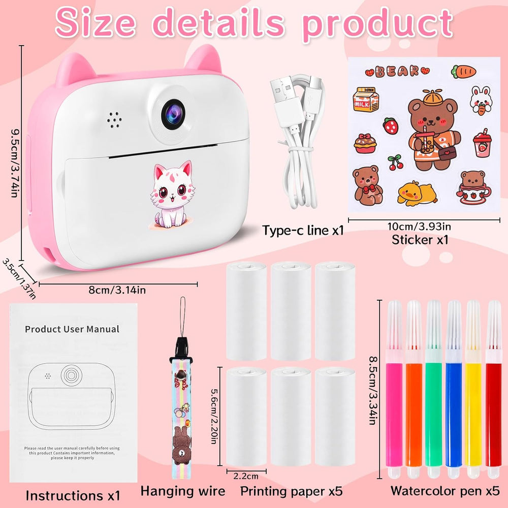 Kinderkamera Sofortbildkamera, 1080P 2,4 Zoll Bildschirm DigitalKamera Kinder mit Druckpapier,32GB K