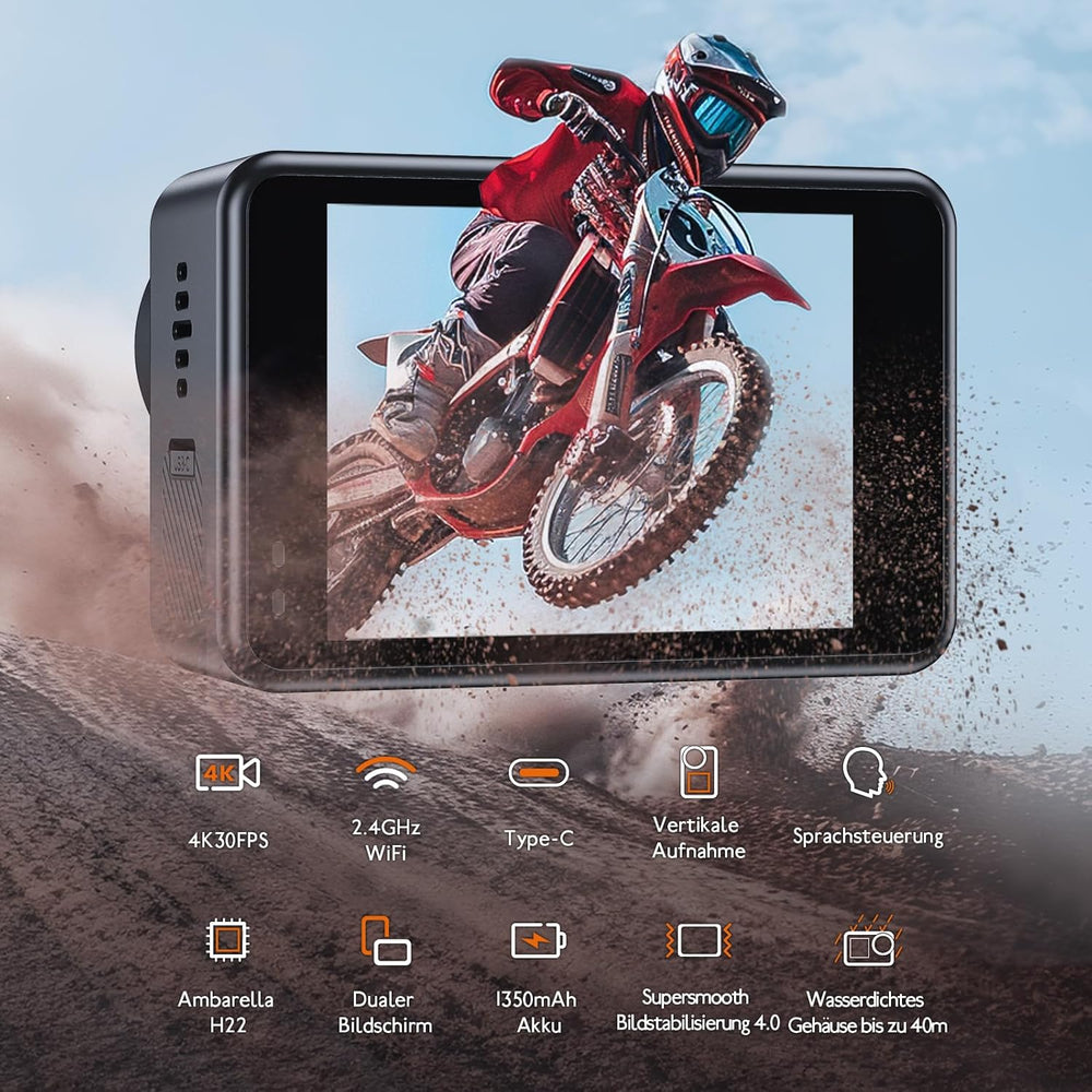 XTU Action Cam 4K30FPS 20MP Ultra HD 2,0 Zoll LCD Touchscreen 40M Unterwasserkamera mit 64GB U3 Spei