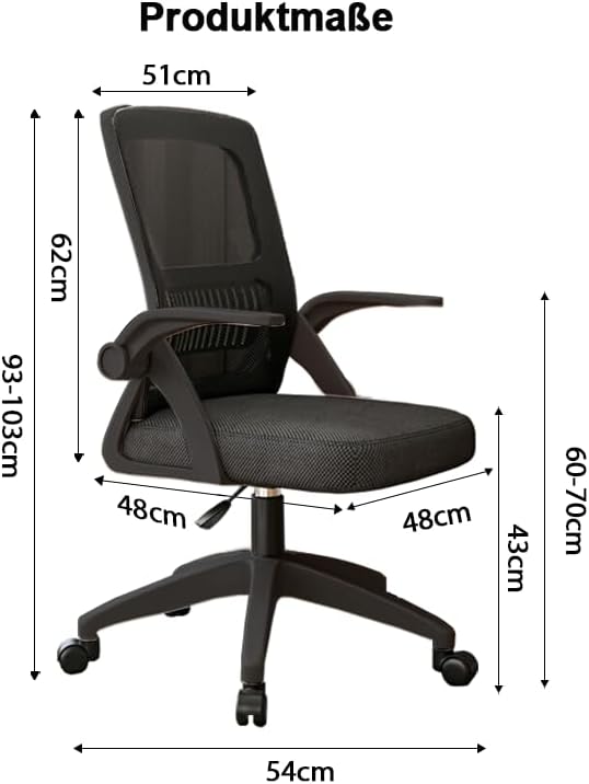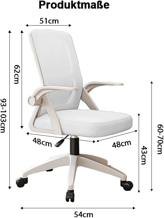 Bürostuhl,Ergonomischer Drehstuhl mit Atmungsaktiver Mesh-Rückenlehne,Hochklappbaren Armlehnen und L