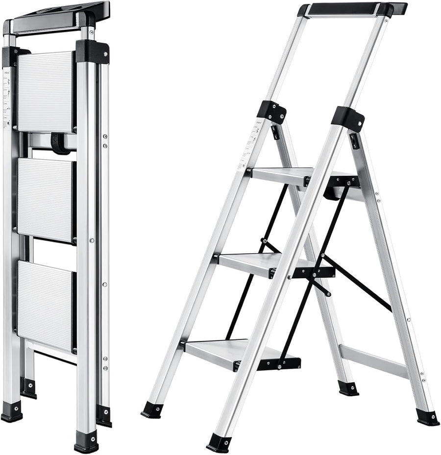XinSunho Stufenleiter, Klapptritt 3 Stufen mit Ausziehbarem Handlauf, Aluminium Tritthocker, rutschf