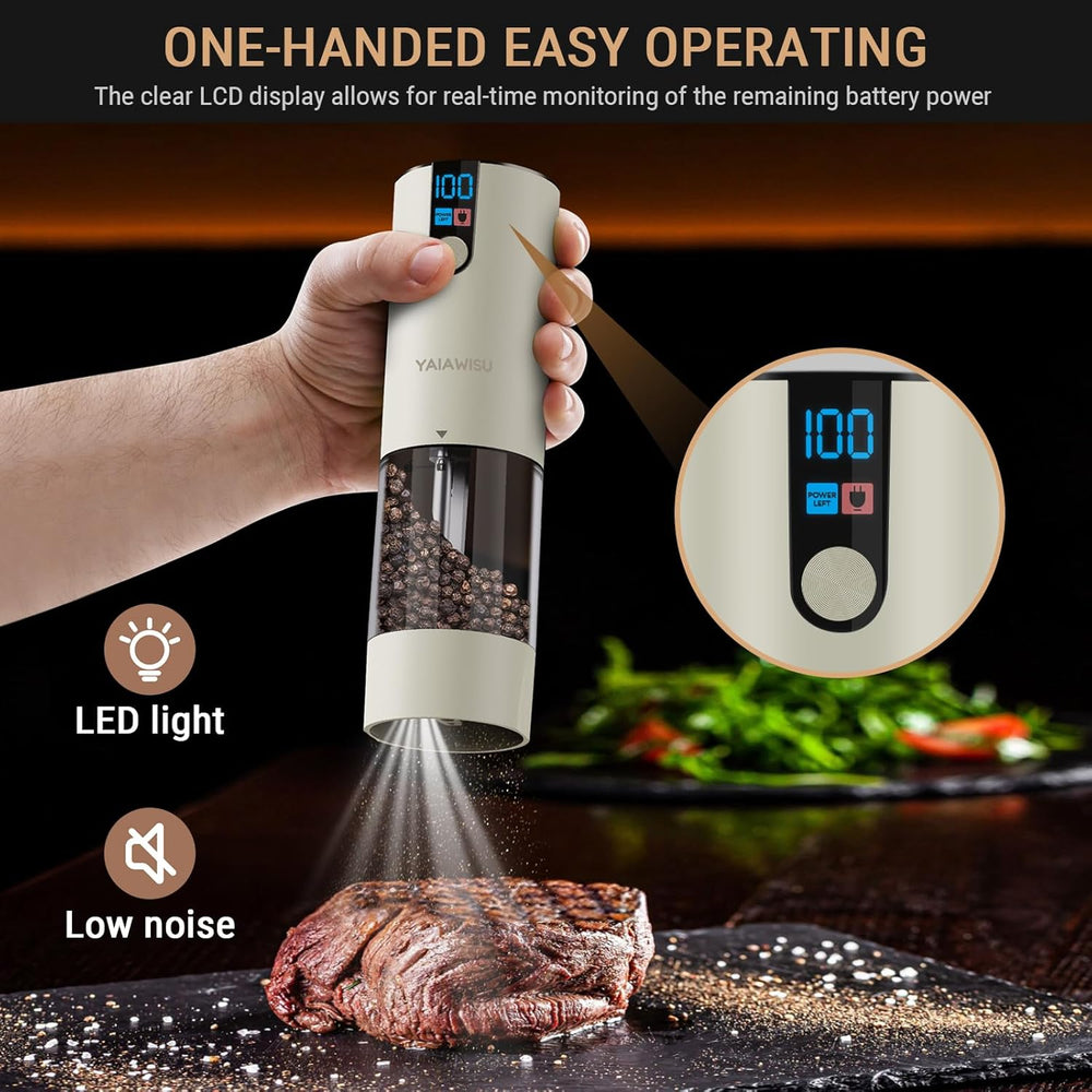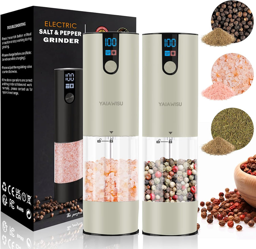 Salz und Pfeffermühlen Elektrisch 2er Set (LED-Display, Wiederaufladbar, Einstellbare Rauheit Kerami