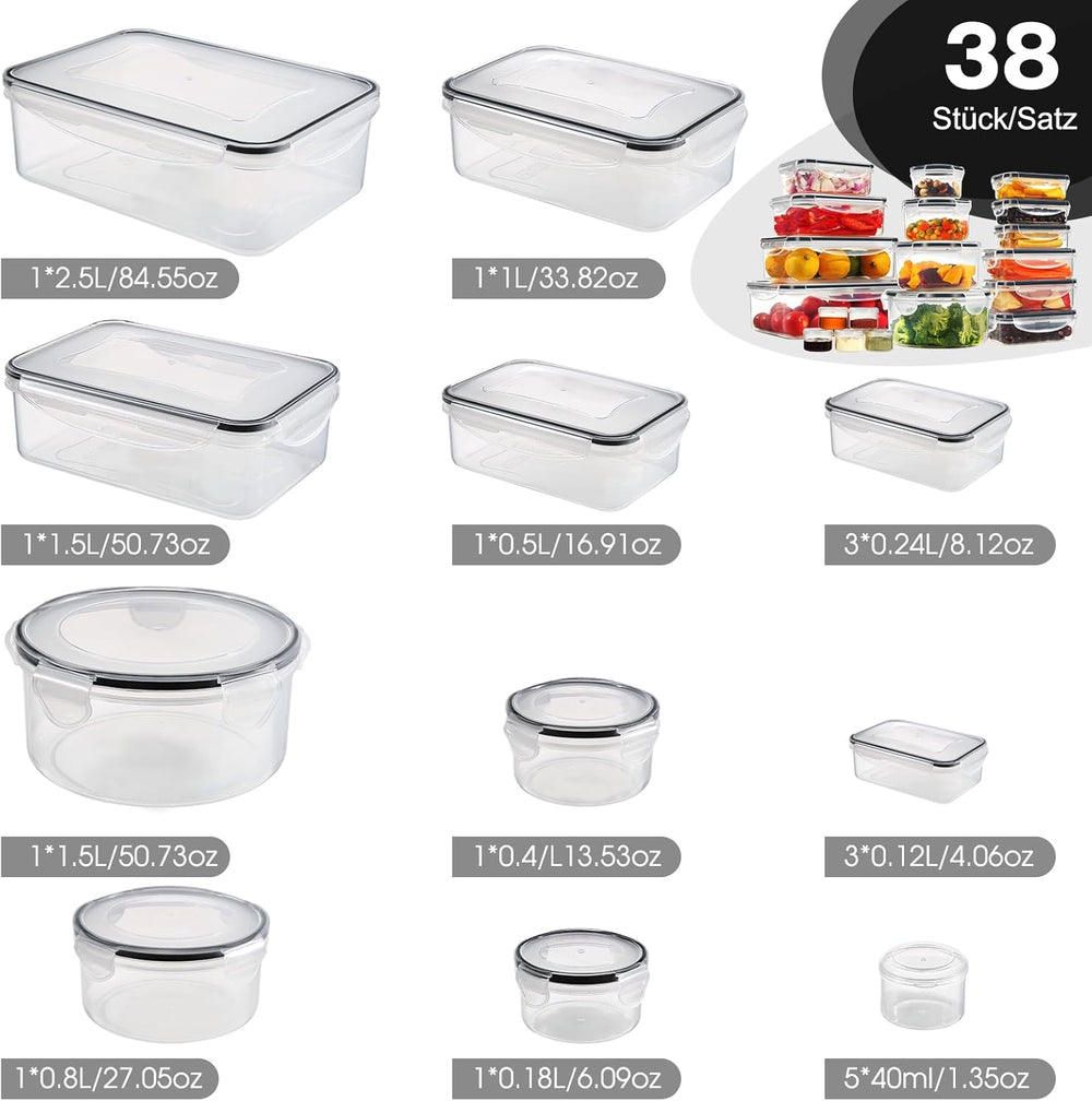 YASHE Frischhaltedosen mit Deckel 38er(19Behälter + 19Deckel), Luftdichte Aufbewahrungsbox, BPA-Frei