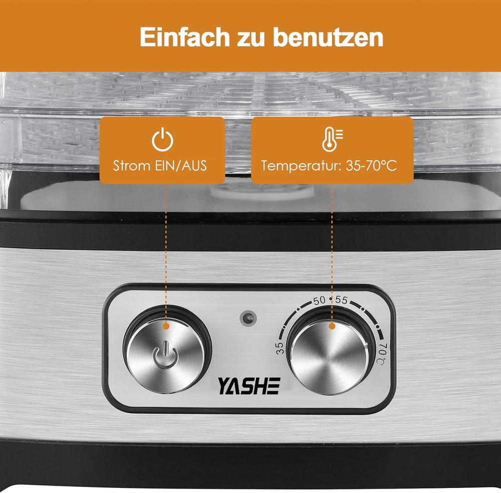 YASHE Edelstahl Dörrautomat mit digitaler Steuerung (Temperatur bis zu 75°C, Timer bis zu 48 Stunden