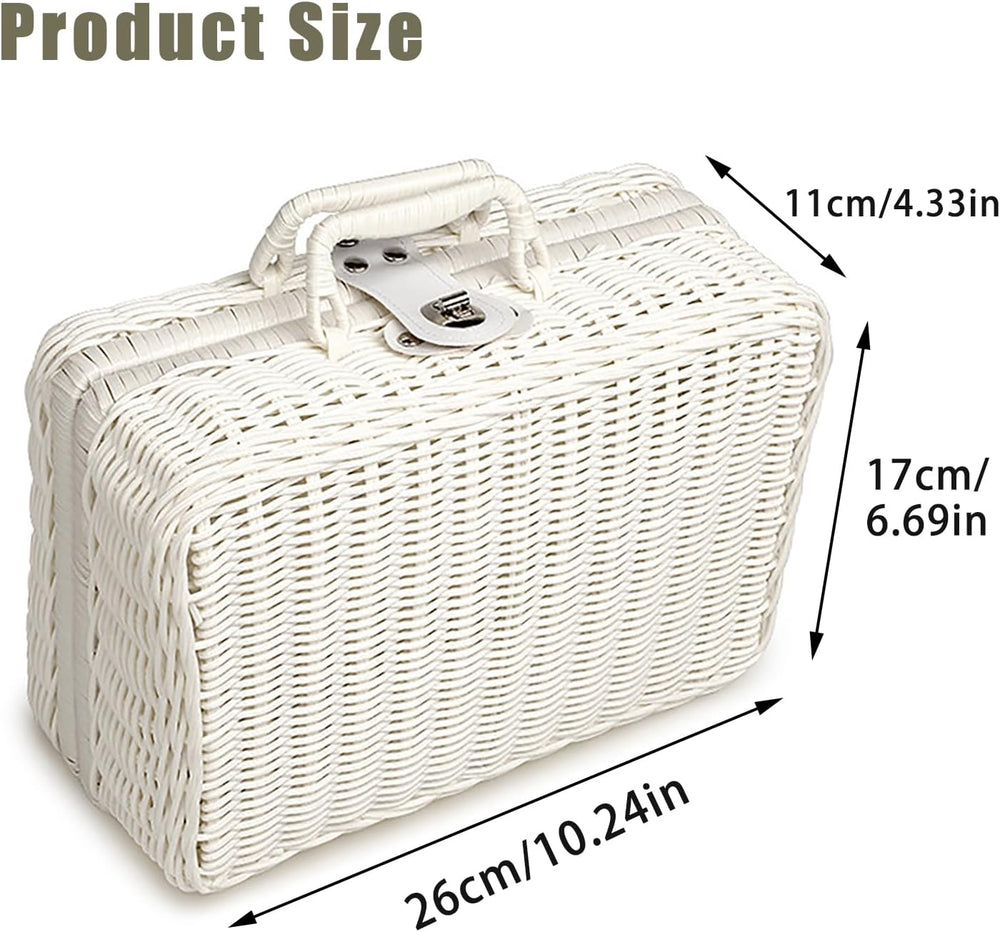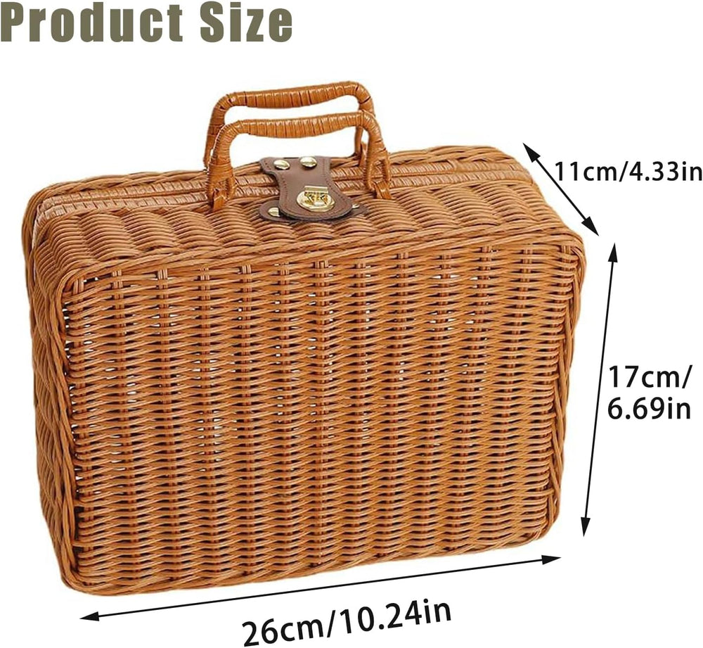 Geflochtener Rattan-Koffer Aufbewahrungskorb mit Griff, Gewebte Picknickbox, Handgewebt, mit Metalls