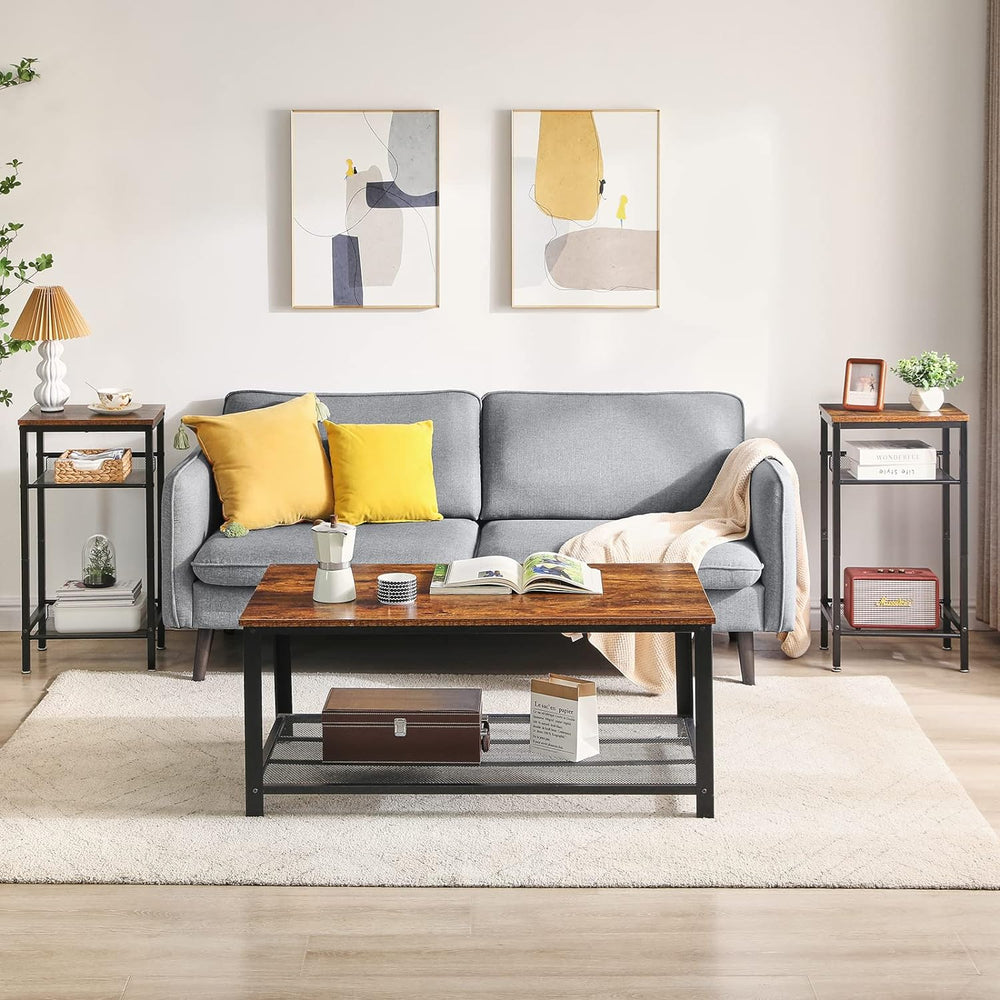YMYNY Beistelltisch 2er-Set, Kaffeetisch mit Lagerregal, Drahtgeflecht, Eleganter Sofatisch, für Kaf