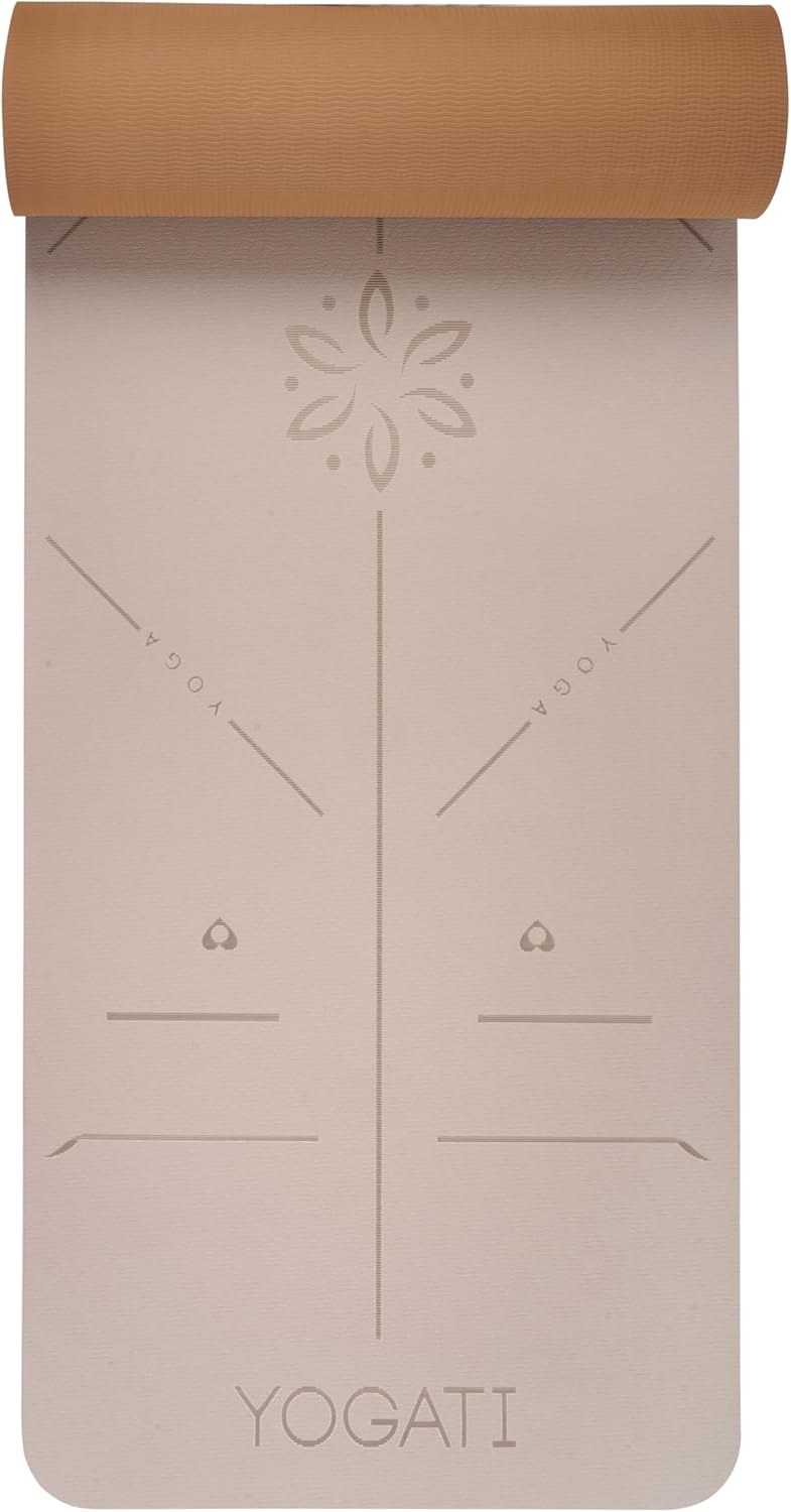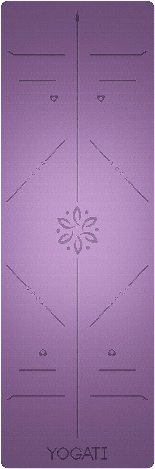 YOGATI Yogamatte rutschfest Schadstofffrei, mit Tragegurt. Yoga Matte mit Ausrichtungslinien. Ideal