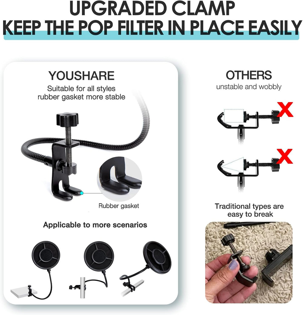 YOUSHARES Mikrofon Arm, Mikrofon Wandhalterung, Metall Tisch Mounting Klemme mit Popschutz für Shure