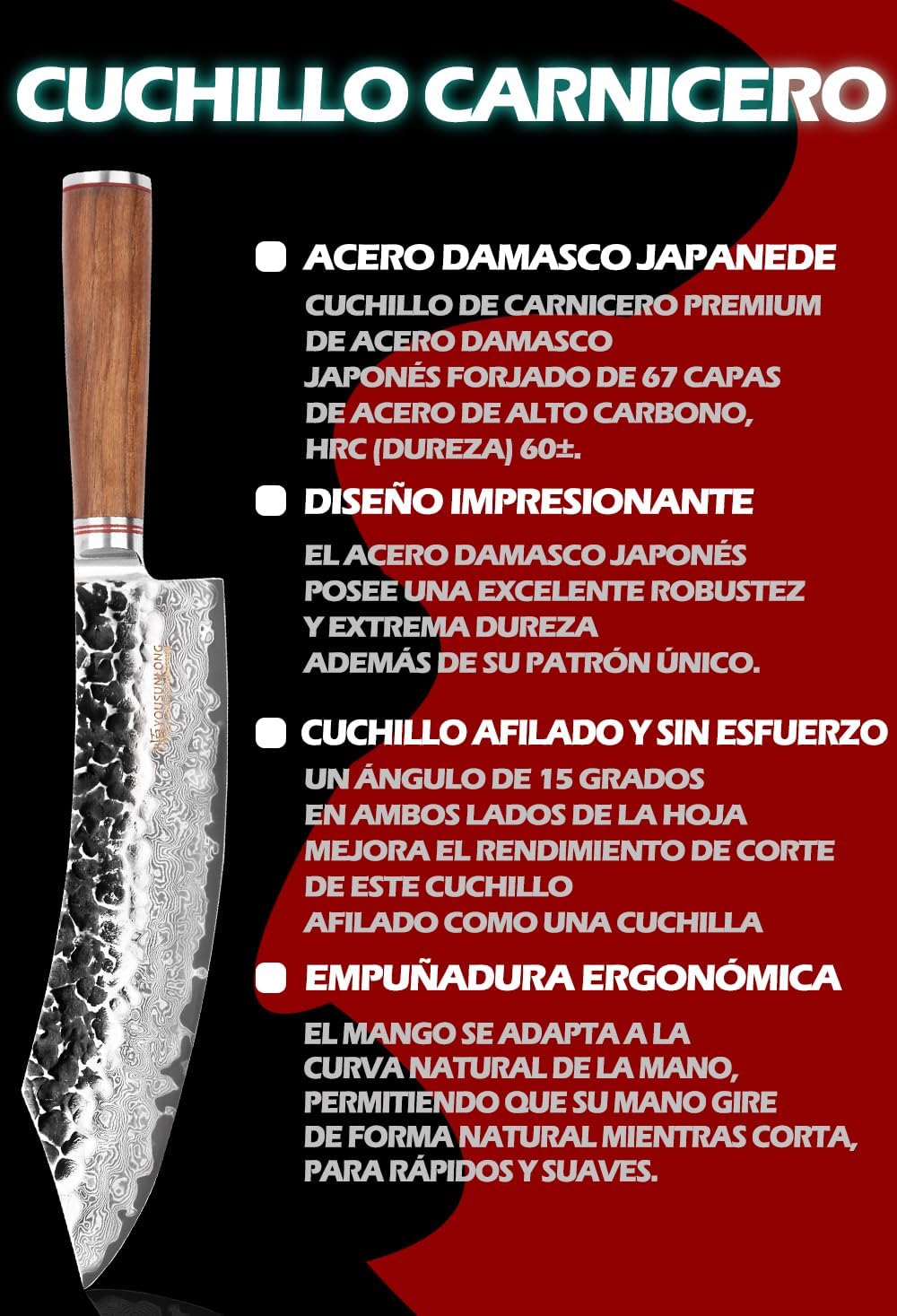 YOUSUNLONG Metzgermesser 22,86cm BBQ Küchenmesser - Japanischer gehämmerter Damaststahl - Leadwood G