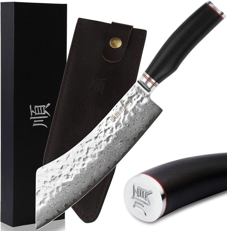 YOUSUNLONG Hackmesser Outdoor Damaststahl Metzgermesser Klinge 20,6 cm - Geschmiedeter Fleischermess