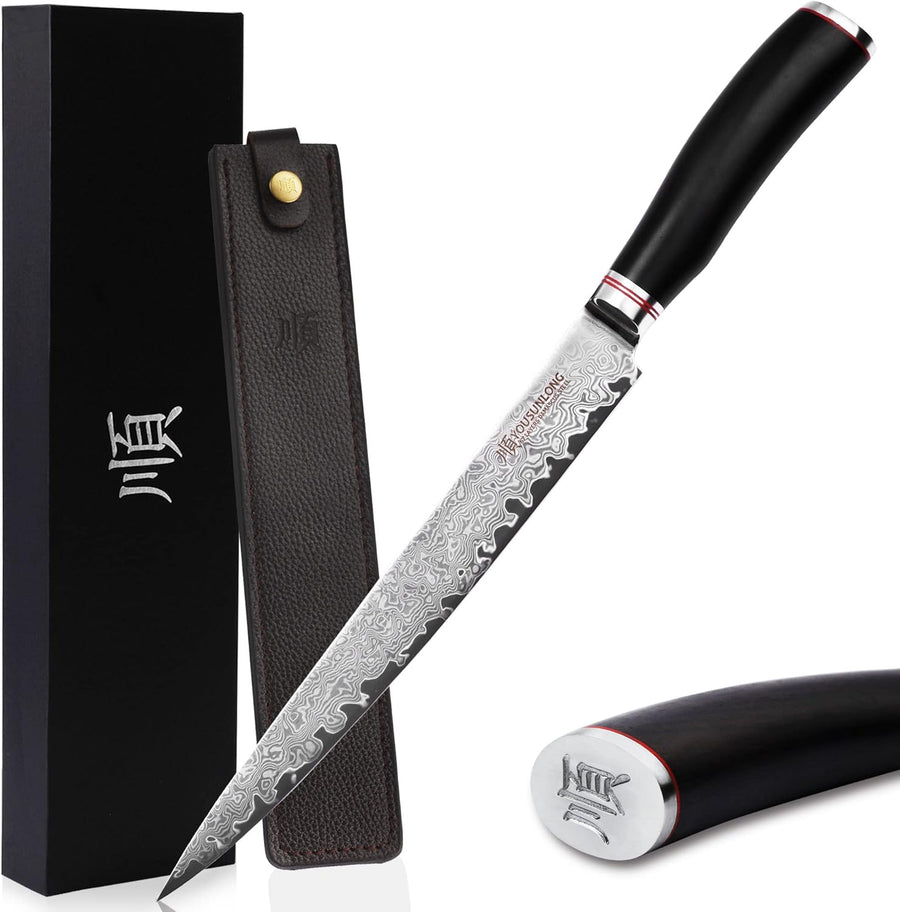 YOUSUNLONG Max Sujihiki Messer 11 Zoll japanisches Pro Carving Messer Damaststahl Ergonomisches Desi