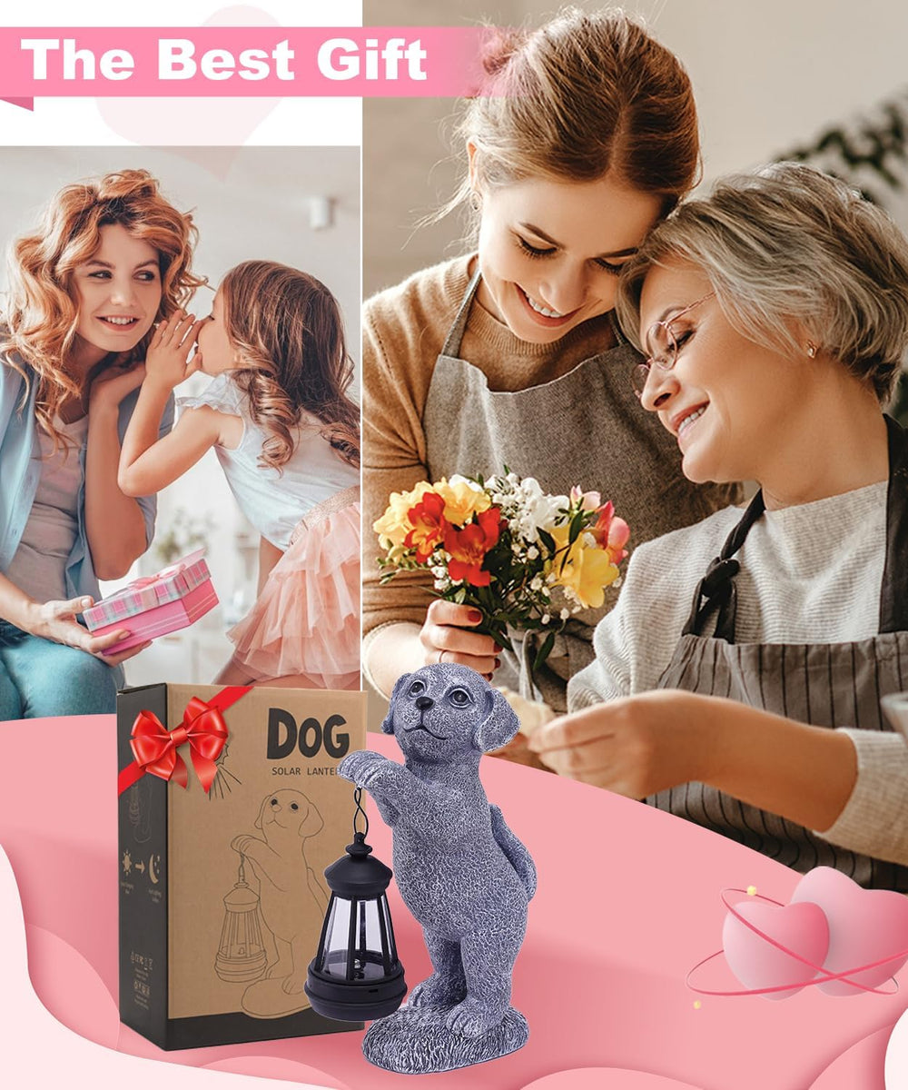 Yeomoo Hund Figur mit Solarlampen Gartendeko für Draussen - Dog Gartenfiguren mit Solarlaterne Garte