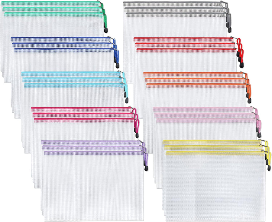 Yoassi Dokumententasche A5, 40 Stücke Mesh Kunststoff Reissverschlusstasche, A5 Datei Taschen mit Re