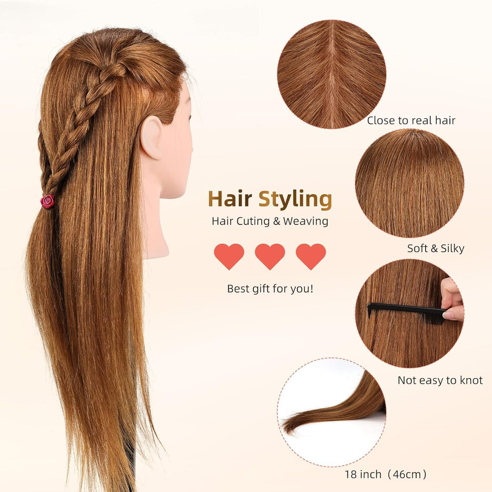 Yofuly 18 Inch Trainingsköpfe für Friseure Übungskopf, 100% Echthaar Kosmetik Schaufensterpuppenkopf