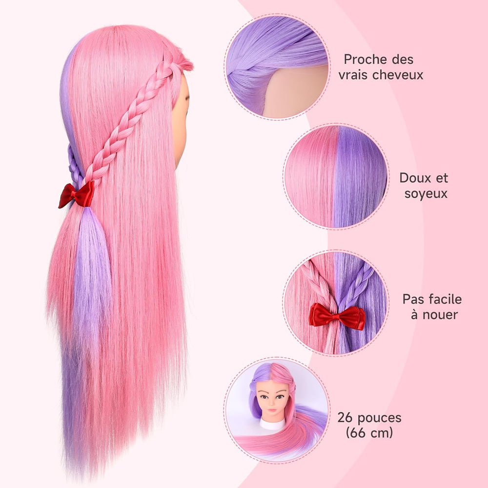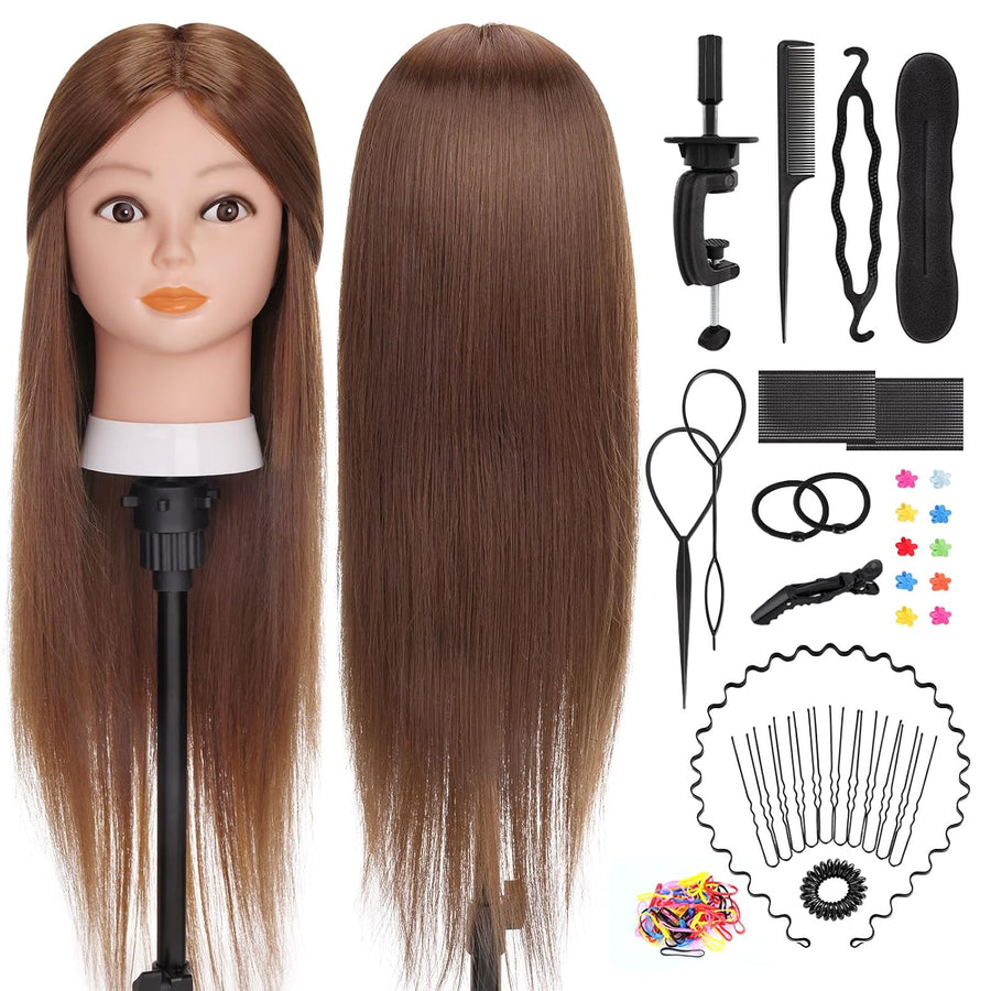Yofuly 29 Zoll Trainingsköpfe für Friseure Übungskopf, 100% Kunstfaser Kosmetik-Mannequin-Puppenkopf