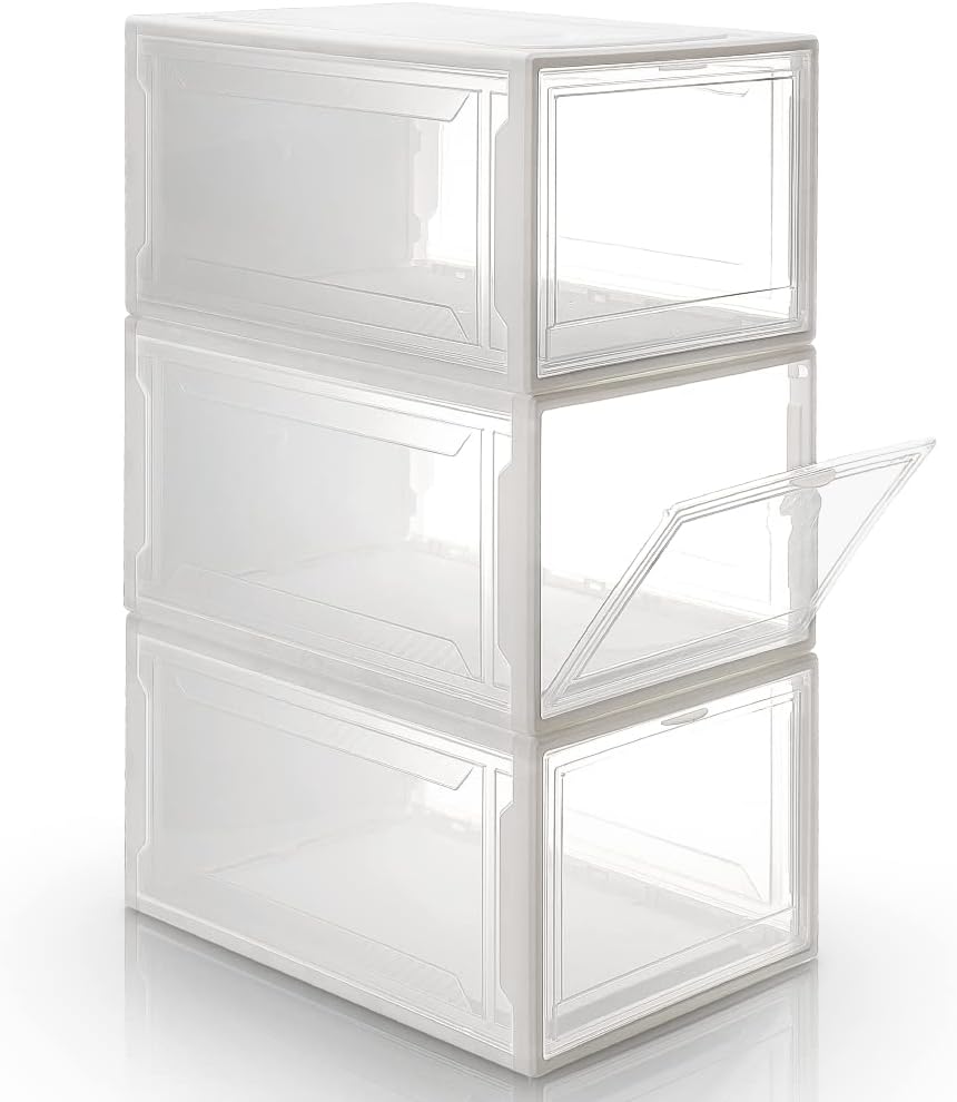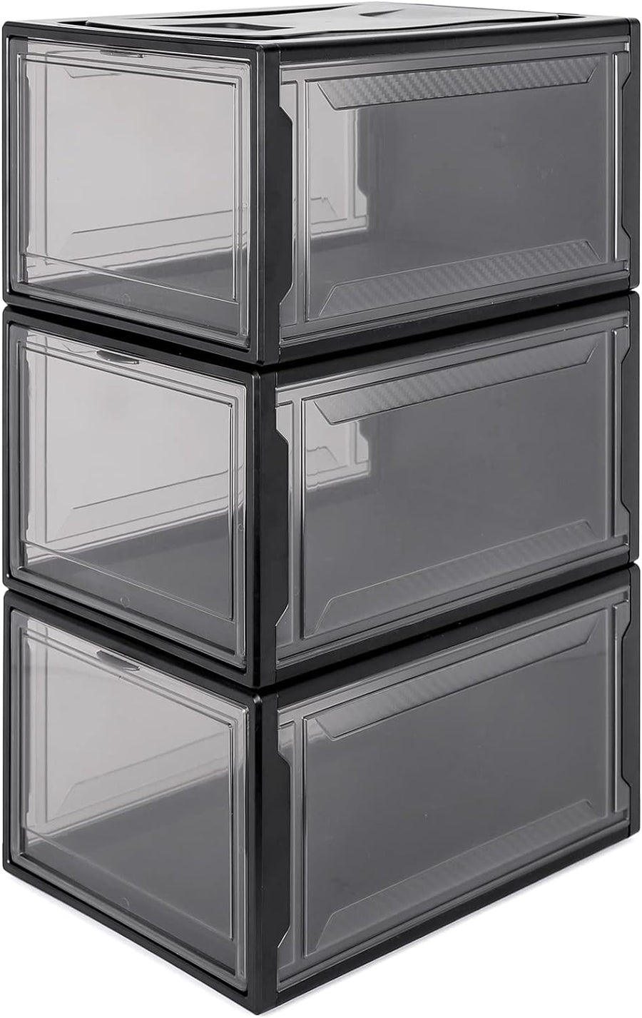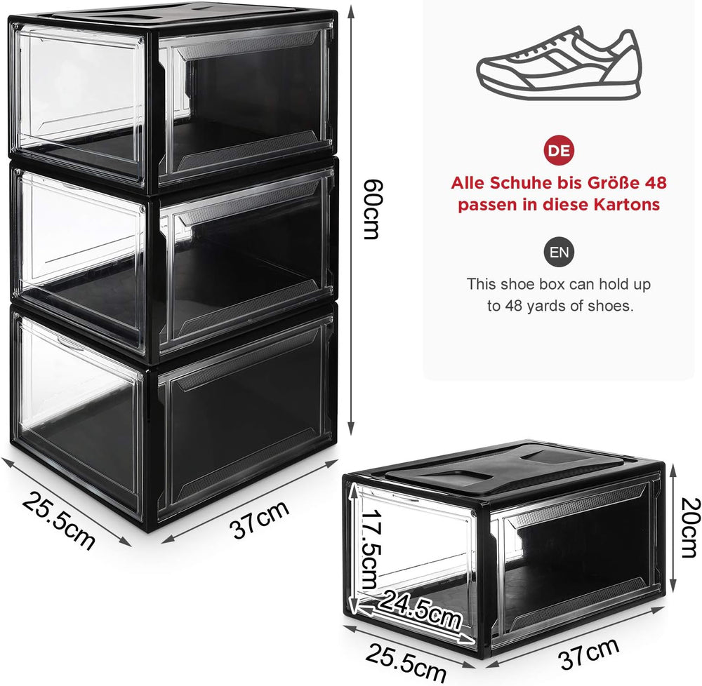 Yorbay Schuhbox, 3er Set, stapelbarer Schuhorganizer, Kunststoffbox mit durchsichtiger Tür, Mehrweg