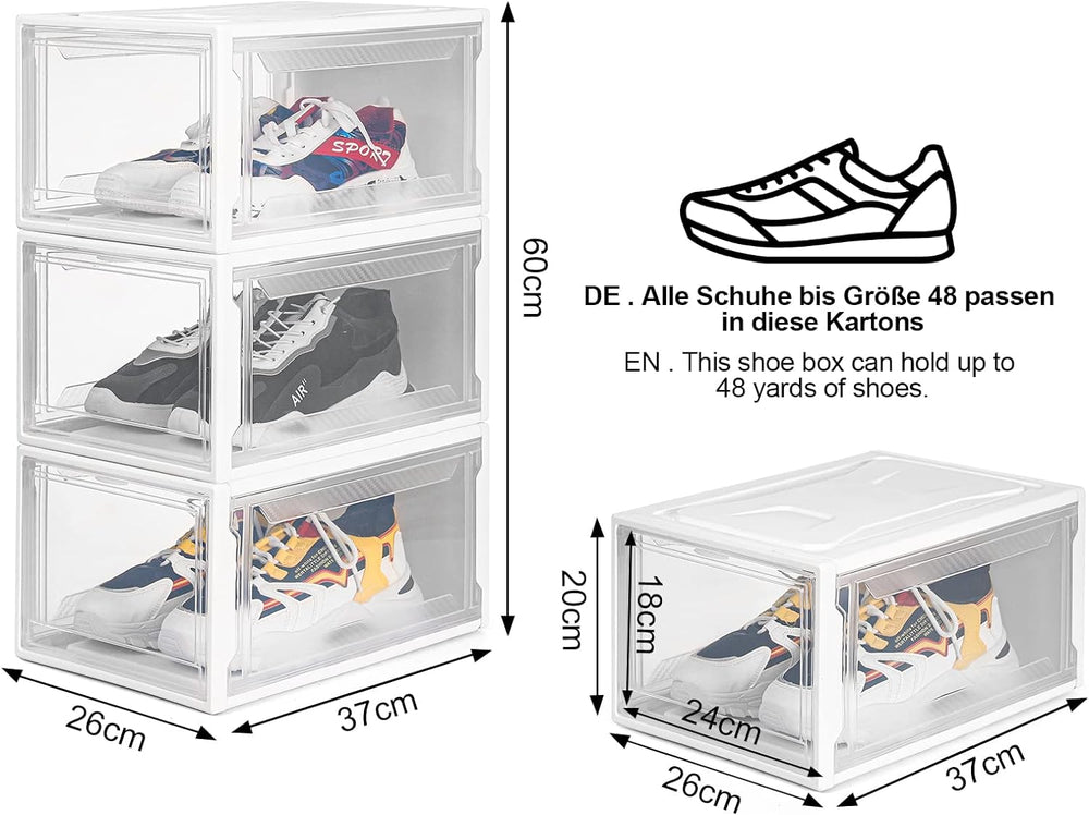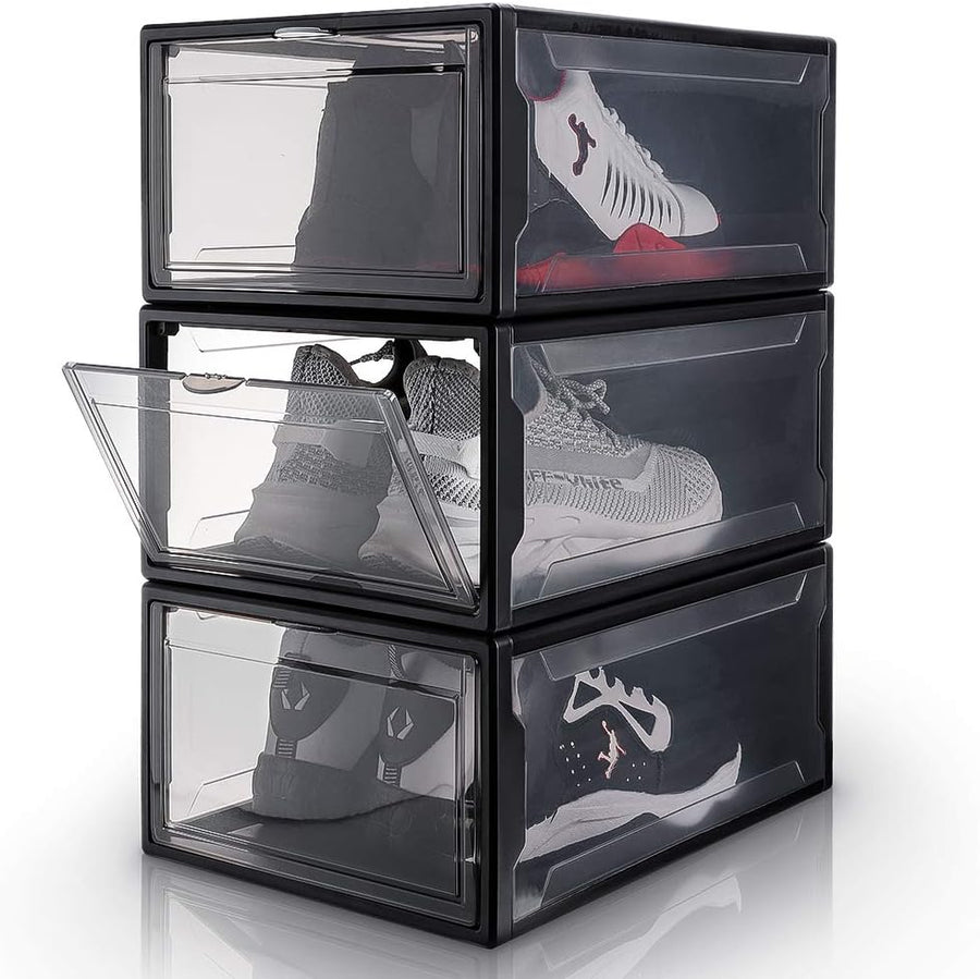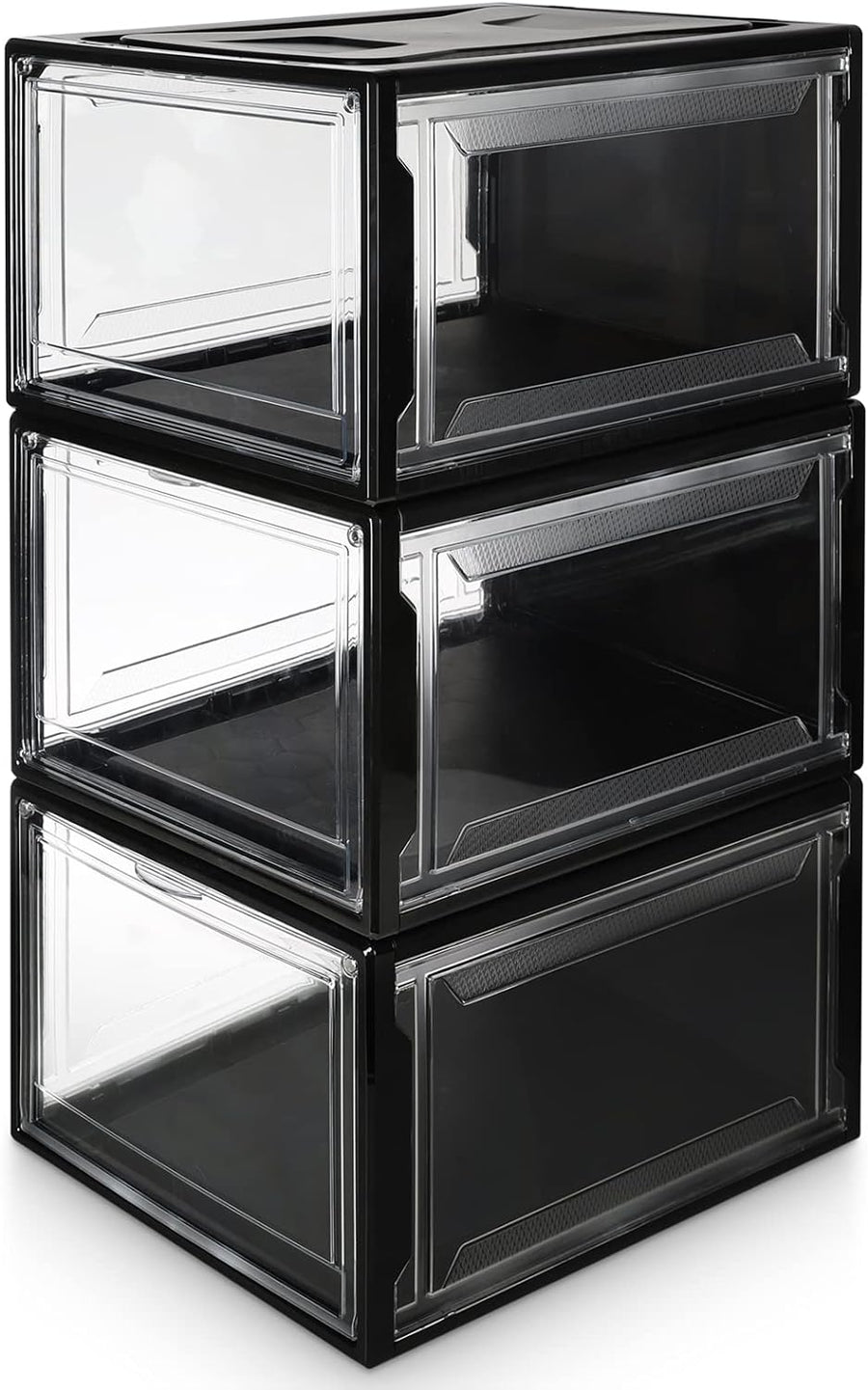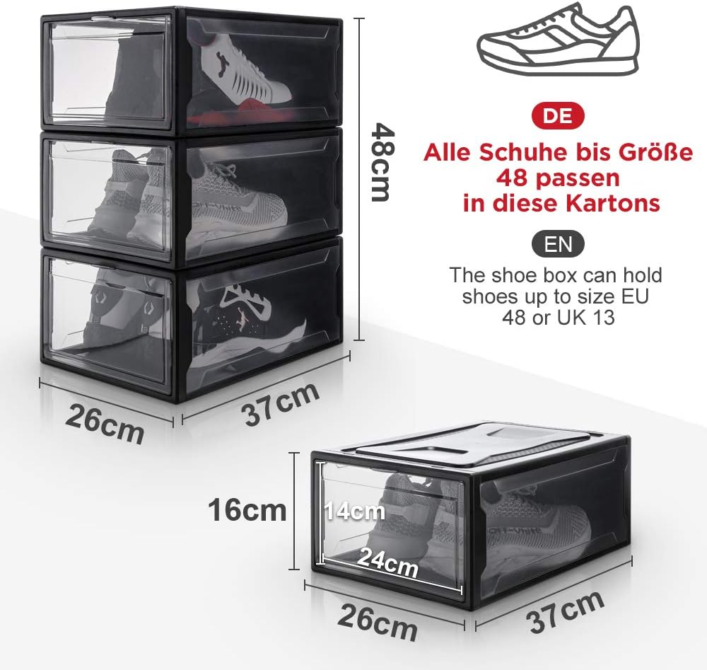 Yorbay Schuhbox, 3er Set, stapelbarer Schuhorganizer, Kunststoffbox mit durchsichtiger Tür, Mehrweg