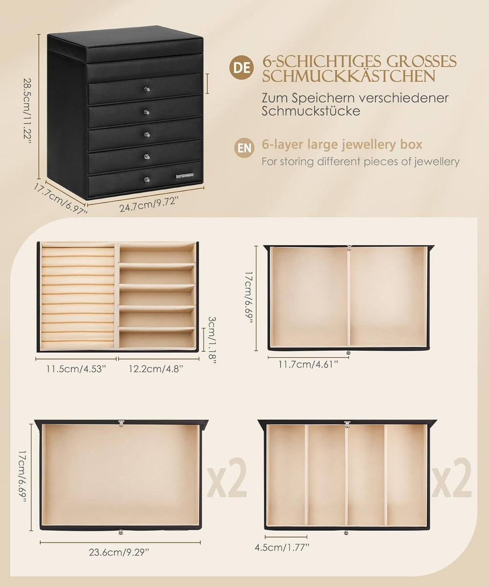 Yorbay Schmuckkoffer Seelux Serie Schmuckkasten (Schwarz, 5 Schubladen) (Mehrweg), Schwarz