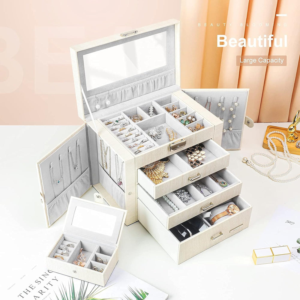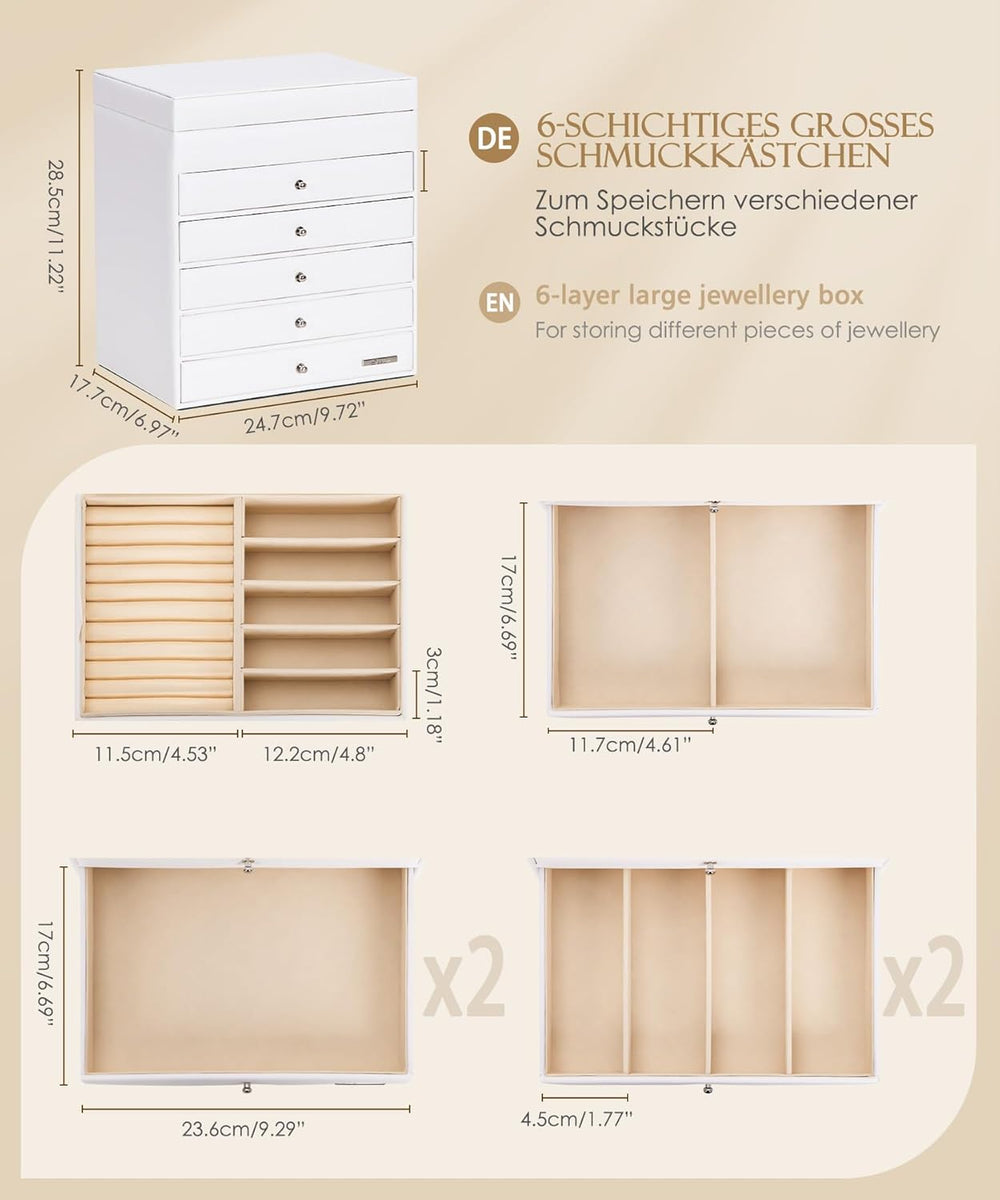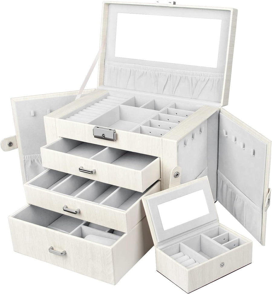 Yorbay Schmuckkästchen Seelux Serie Schmuckkoffer in Weiss, mit 5 Schubladen und Spiegel für Halsket