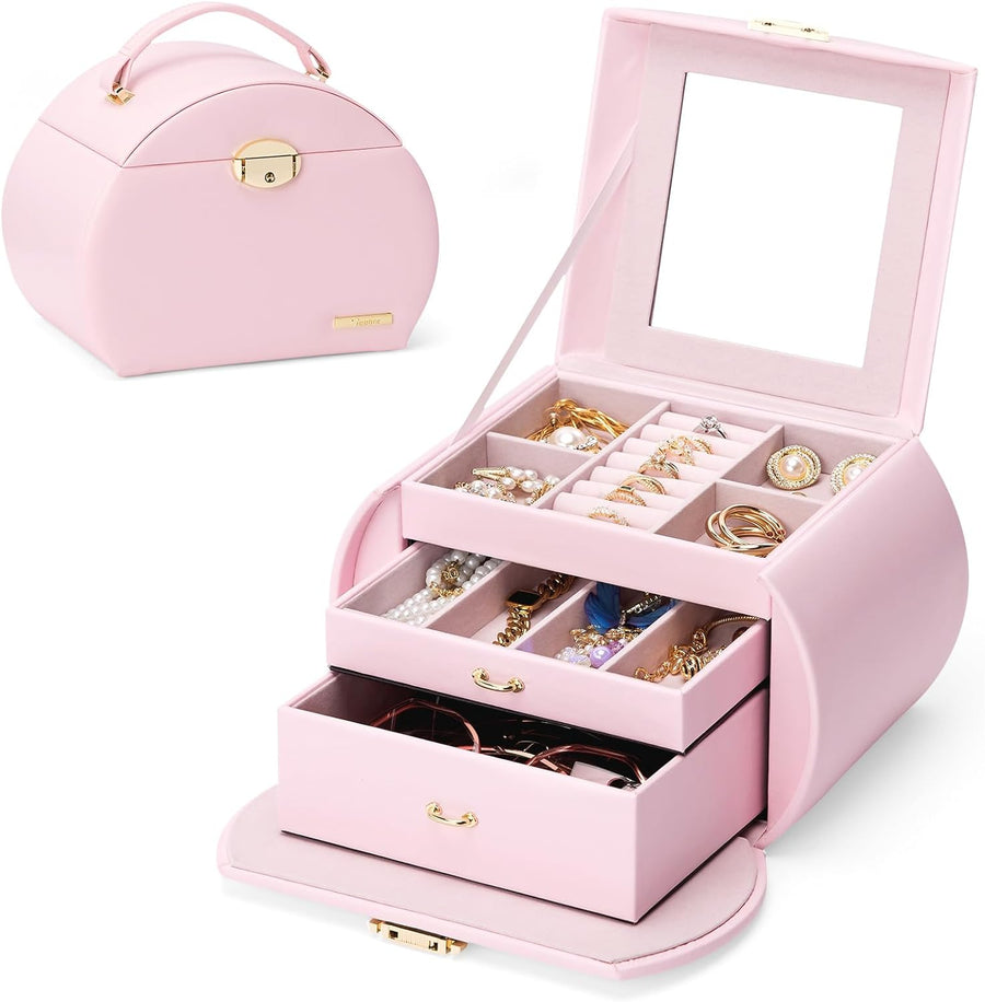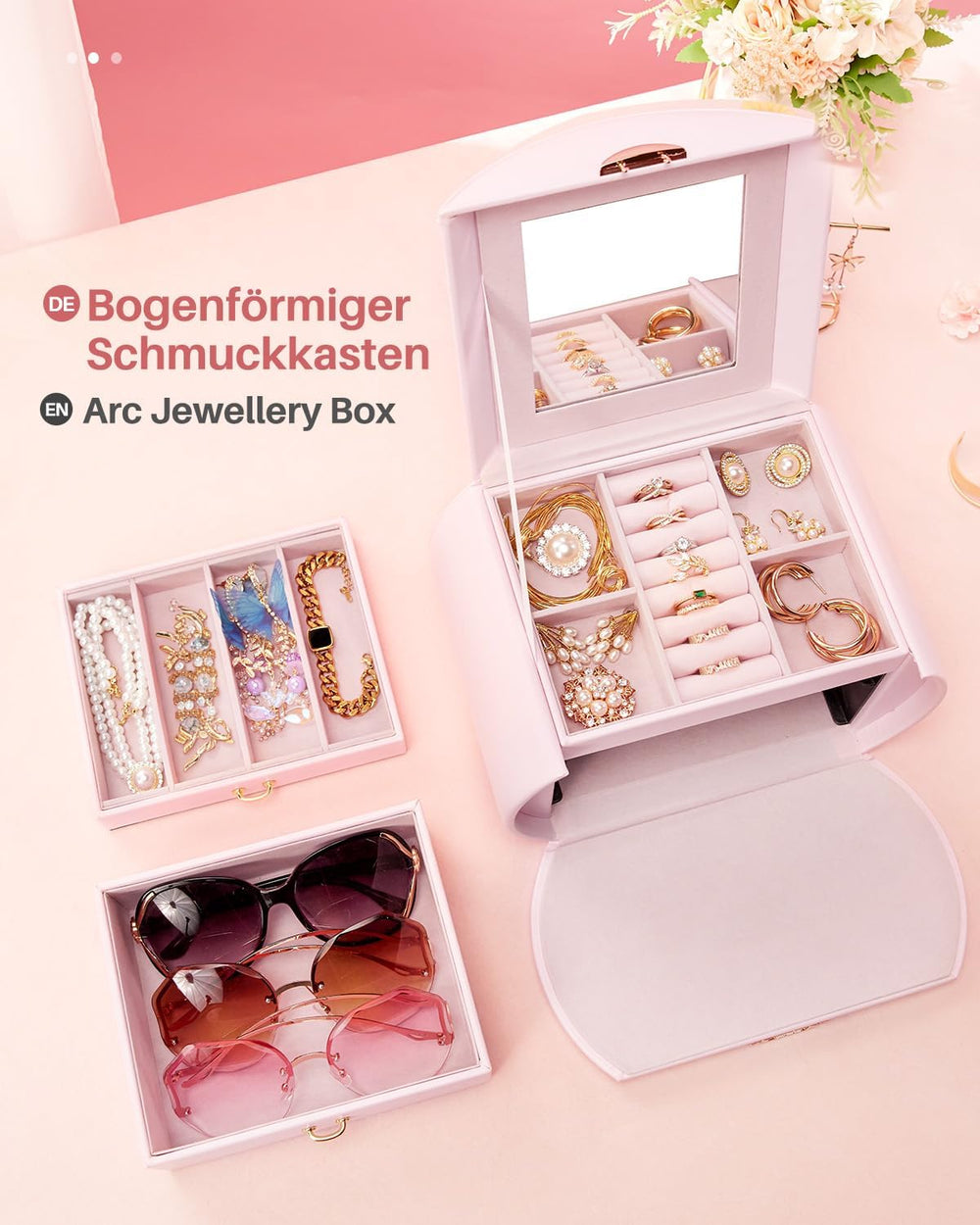 Yorbay Schmuckkästchen mit 3 Ebenen, abschliessbar mit Spiegel, Seelux Serie Schmuckkasten für Halsk