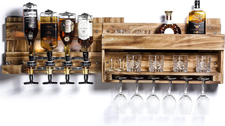 Yorbay Weinregal Palette beflammt Holz, Wandbar mit 4 Getränkespender Wand Flaschenhalter Flaschenha