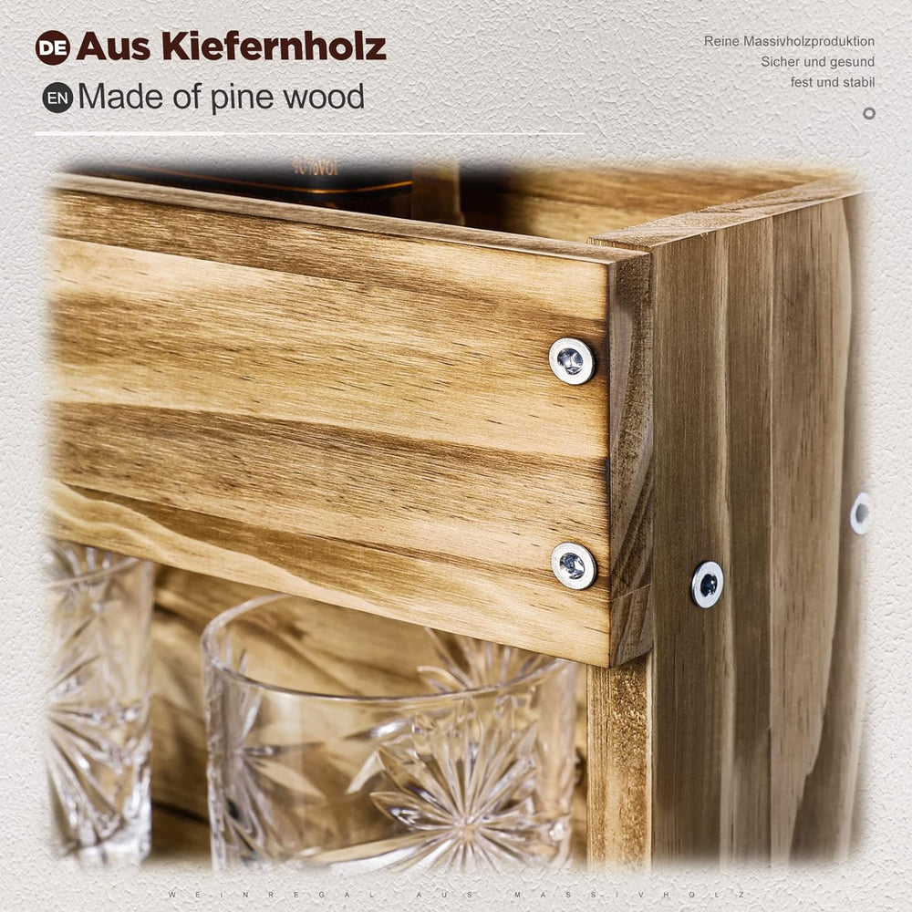 Yorbay Weinregal Palette Beflammt Holz, Wandbar mit Korkhalter, für Weingläser,Whiskygläser,Flaschen