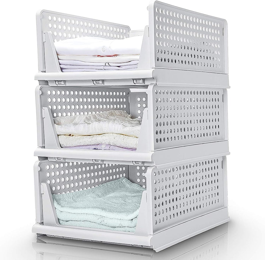 Yorbay Schubladenbox, 3er Set, Stapelbare Kleiderschrank Organizer, Regal Aufbewahrungsbox, Trennwan