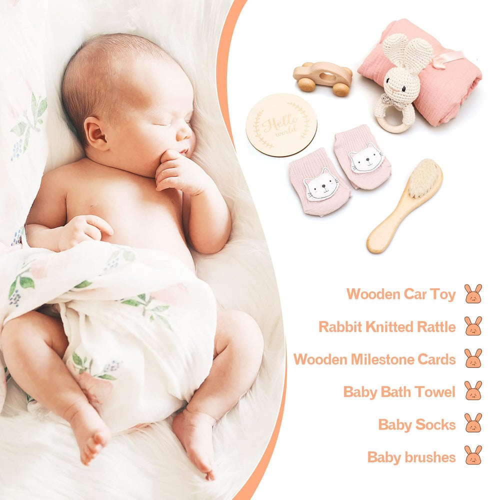 Youuys 6-Teilig Baby Geschenk zur Geburt für Neugeborene, Baby Geschenk Mädchen Junge, Badetücher, R