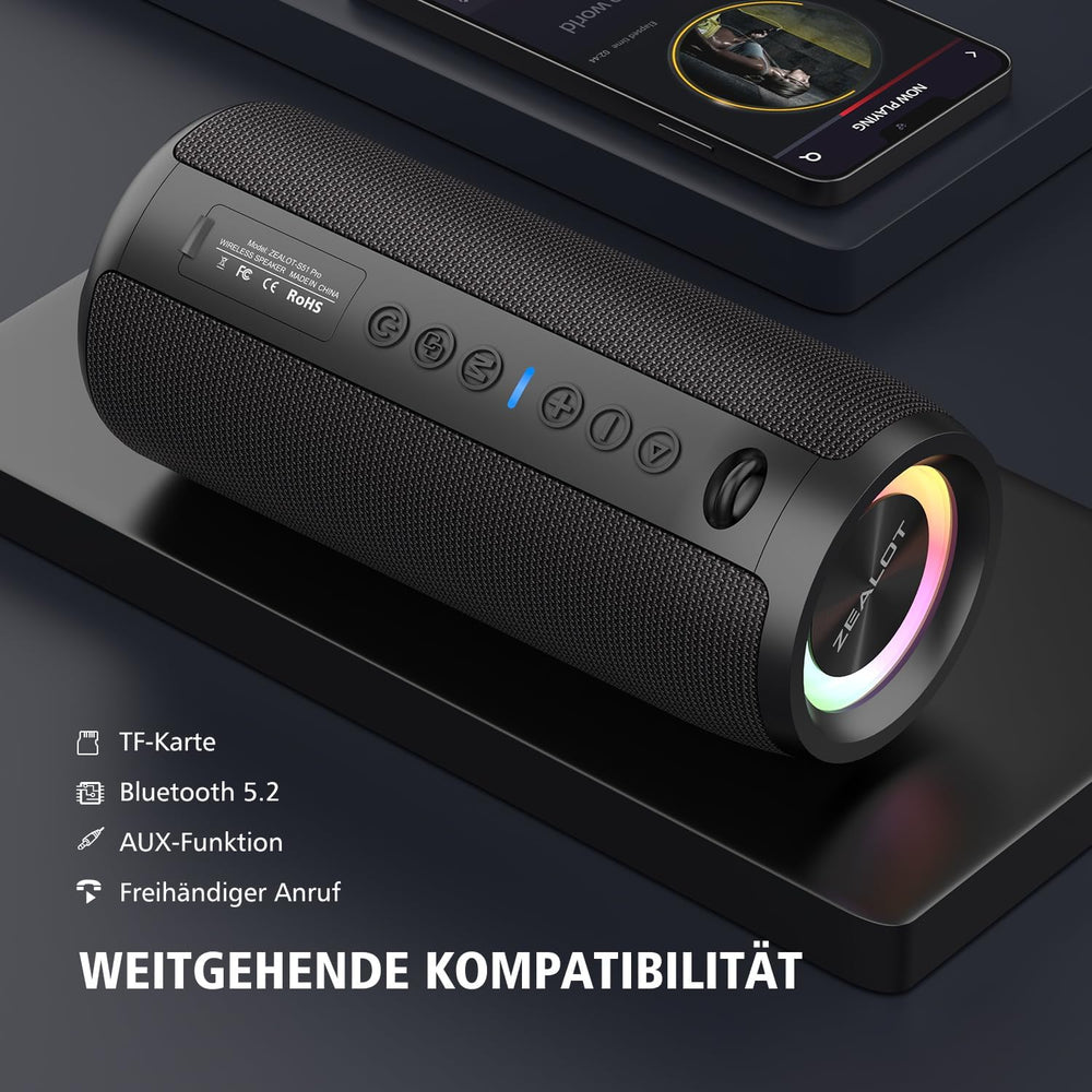 ZEALOT Bluetooth Lautsprecher S51 Pro mit Licht,Musikbox Tragbarer Blueooth Box,40W kraftvoller Ster