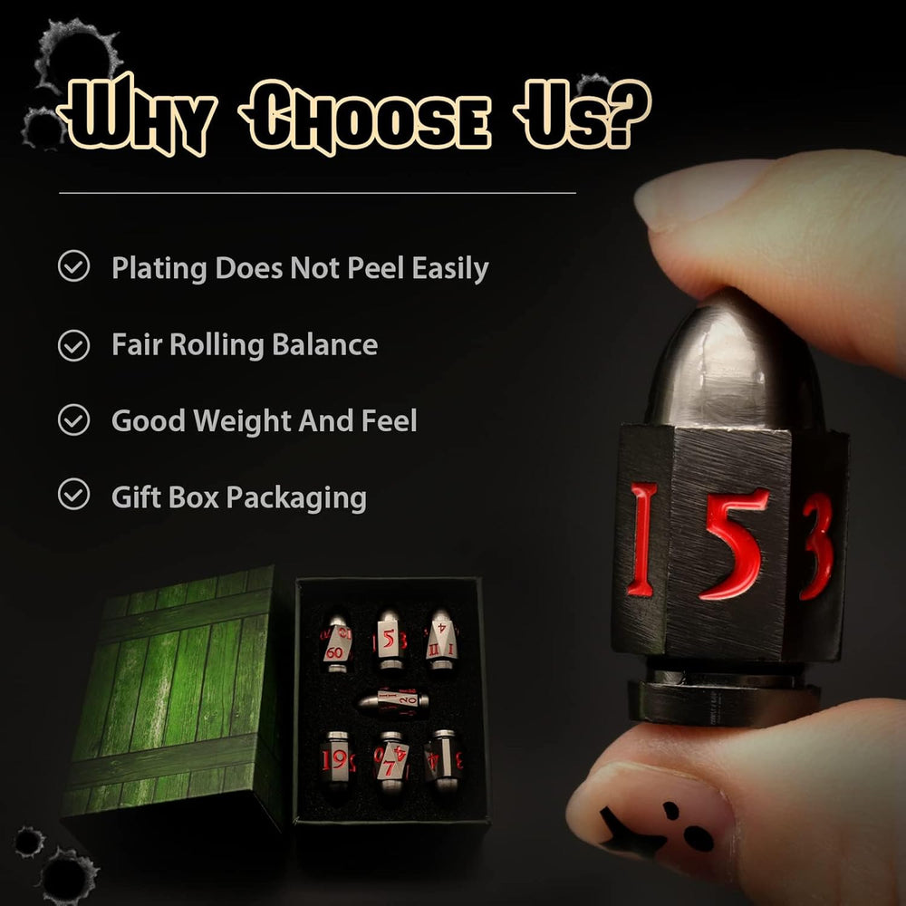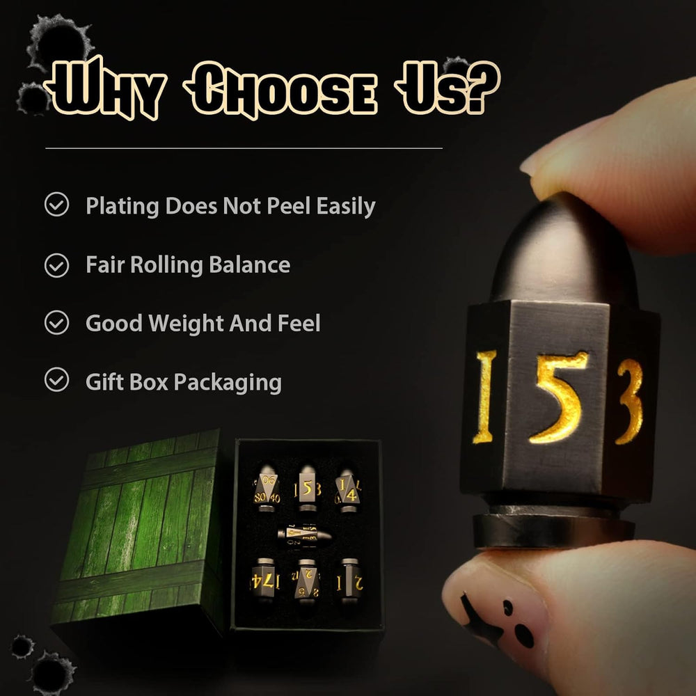 DND Würfelset Dungeons and Dragons Würfel, ZHOORQI Bullet Metall Würfel Set, Polyedrische Würfel Set