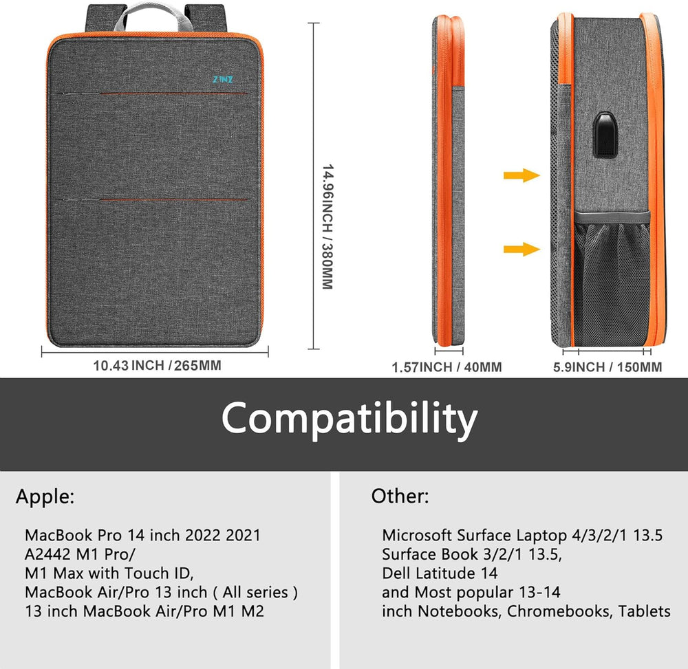 ZINZ Schlank und Erweiterbar Laptop Rucksack Wasserdicht Notebook Tasche für Männer und Frauen 13-14