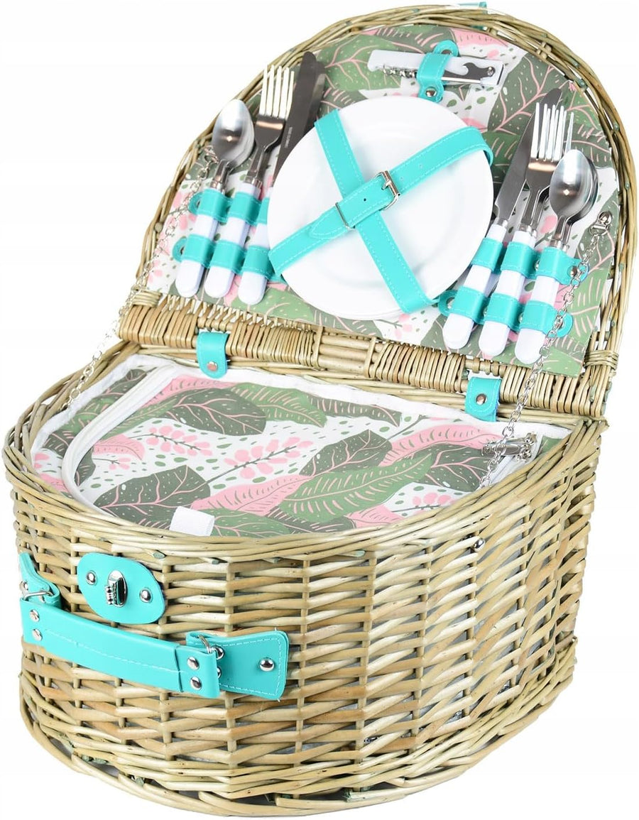 Zolta Picknickkorb 4 Personen - Korb mit Deckel - Weidenkorb mit Picknick Geschirr und Thermischer E