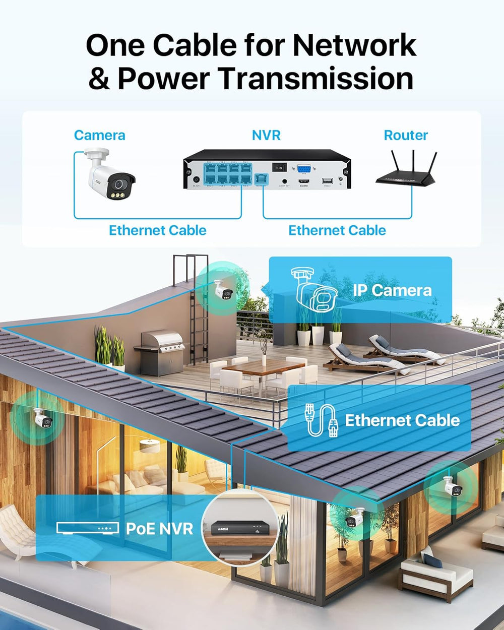 ZOSI 4K Outdoor Surveillance Camera Set, 8X 8MP PoE Outdoor Camera with Person Detection, 4TB HDD NV