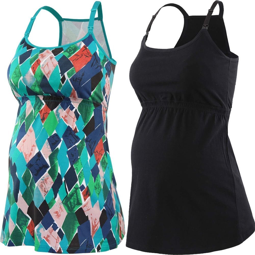 ZUMIY Schwangerschaft Stillen Top, Damen Baumwolle Umstandskleidung Schlaf Ärmellos Cami mit Verstel