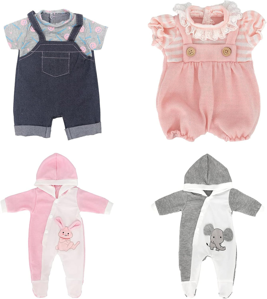 ZWOOS Puppenkleidung für New Born Baby Puppen 35-43 cm, Geschenke für Mädchen, Kinder, 4er-Pack